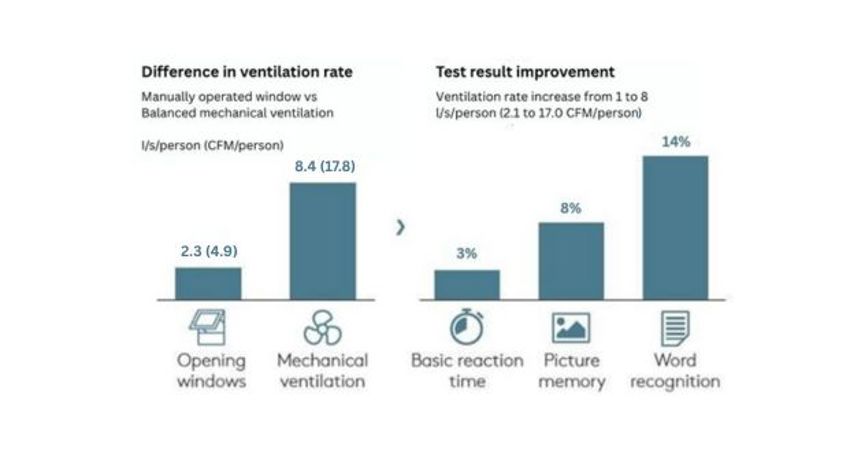 Improved ventilation has a positive impact on results in many ways such as: improving alertness, memory and concentration.