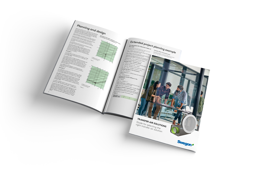 Als standaard transferluchtroosters niet geschikt zijn vanwege verschillende omstandigheden, zoals geluidseisen, luchtdebieten of situaties waarin een flexibele installatie nodig is, kunnen als passende oplossing verschillende producten van Swegon worden gecombineerd.