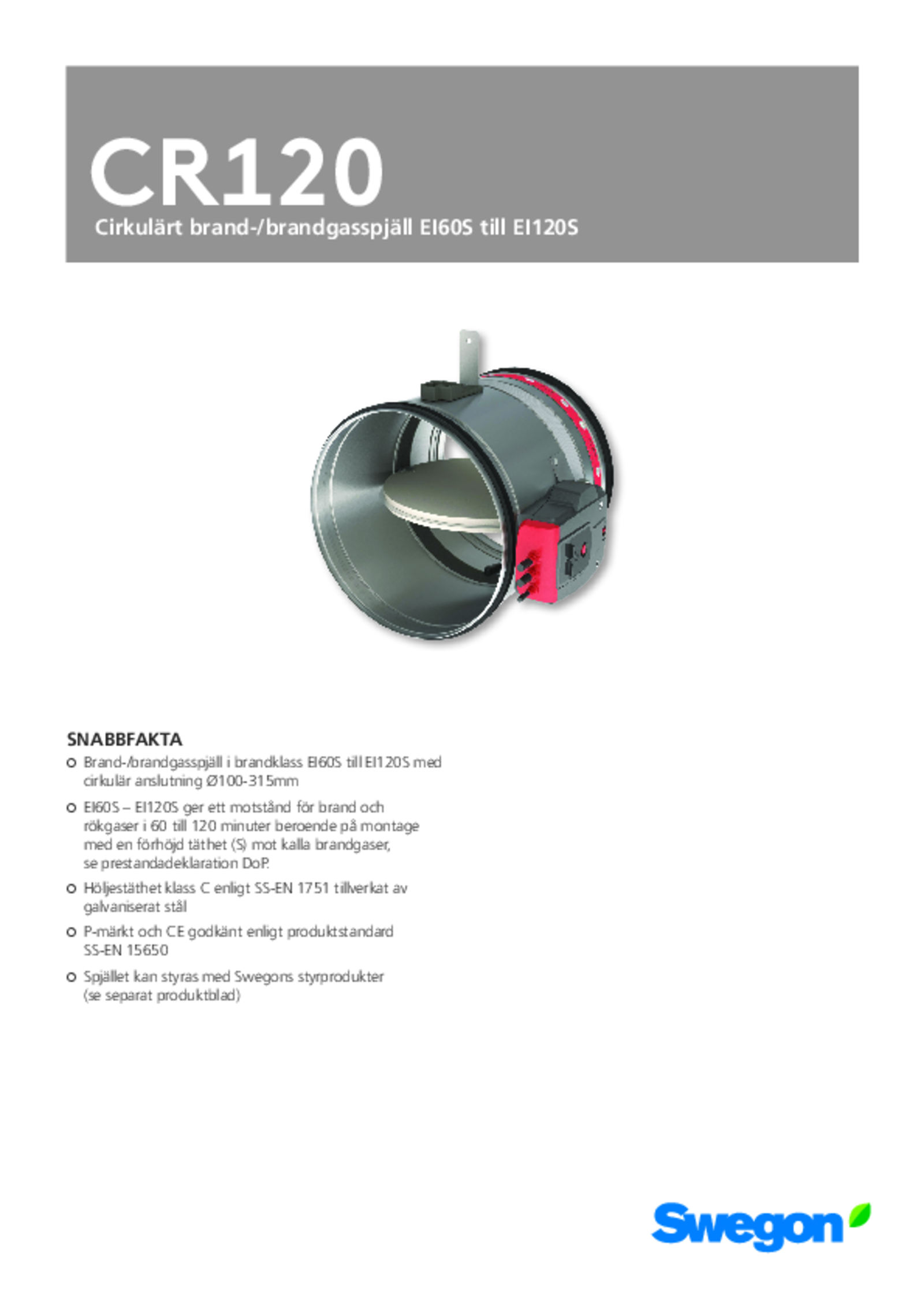 • Kan styres med Swegons styreprodukter (se separat produktblad)