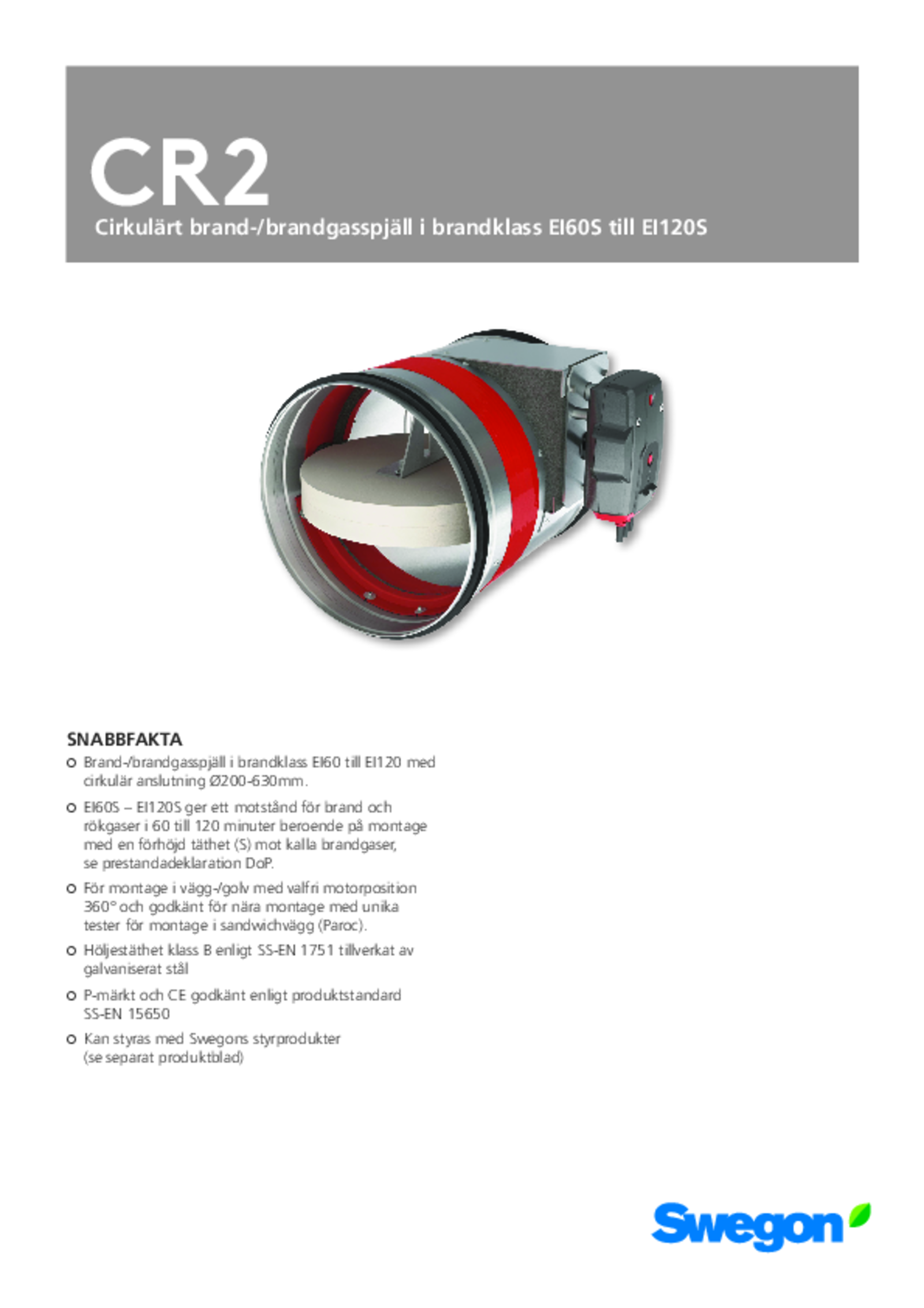 - Kan styres med Swegons styreprodukter (se separat produktblad)