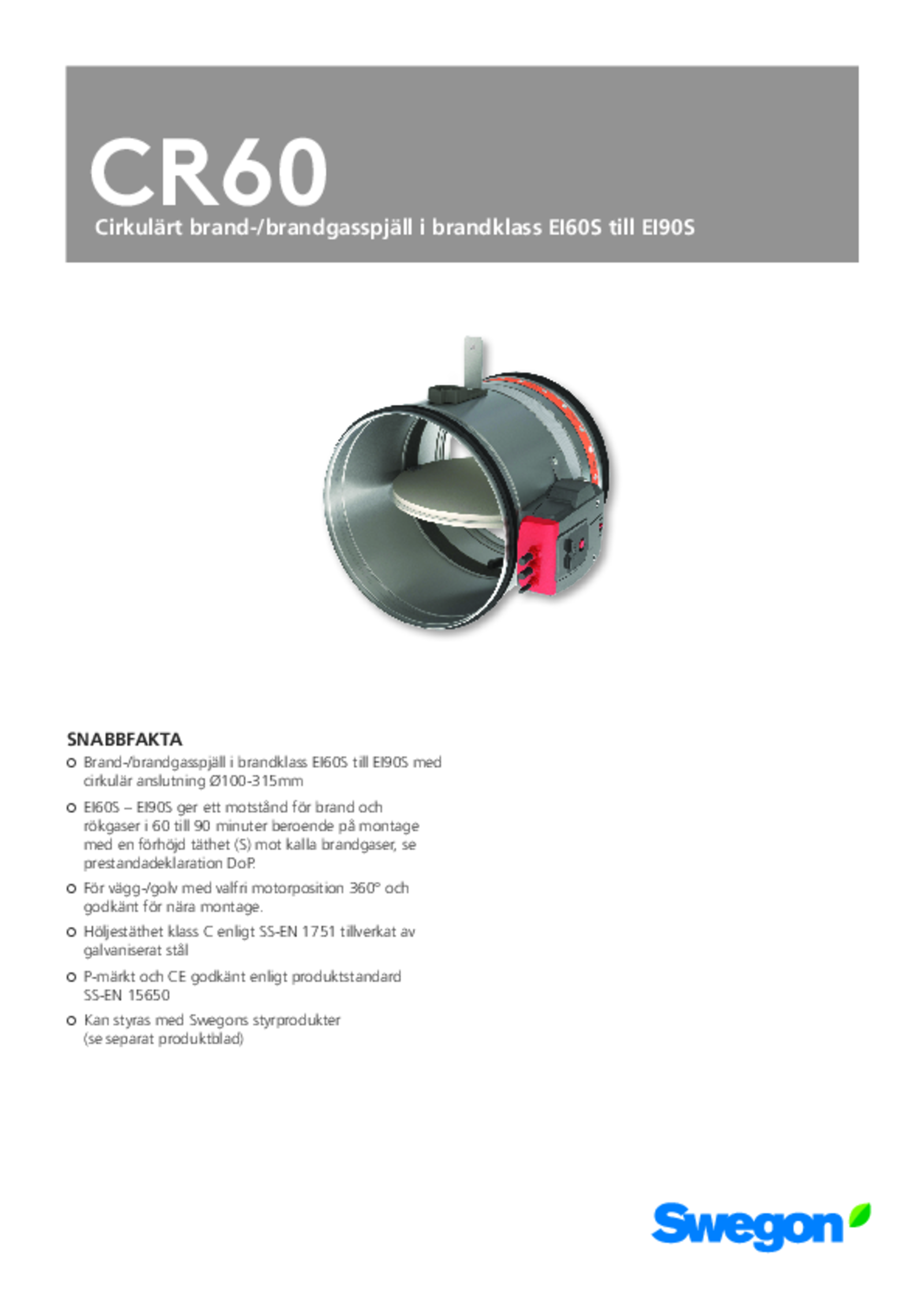 • Kan styres med Swegons styreprodukter (se separat produktblad)