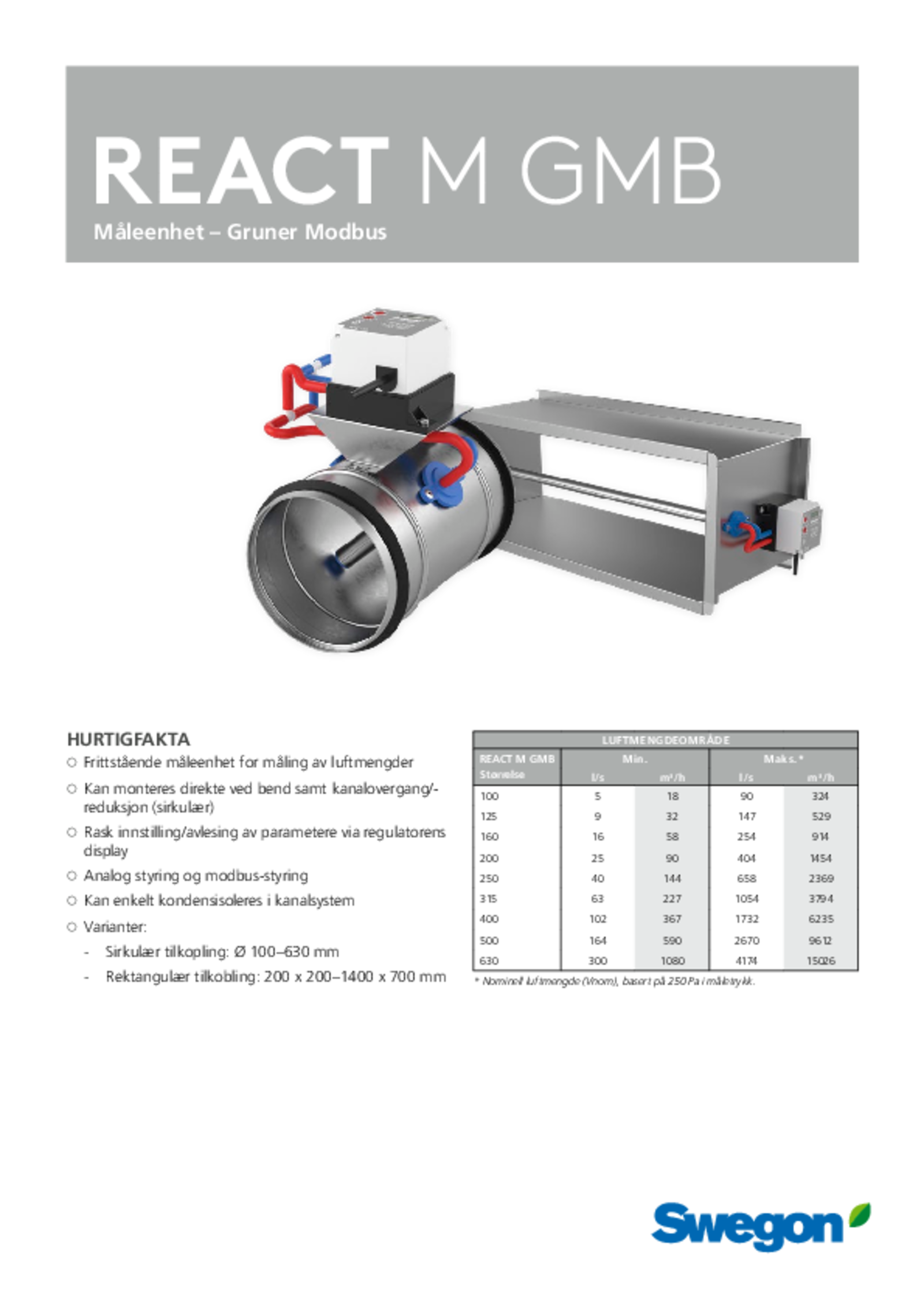 • Sirkulær tilkopling: Ø 100–630 mm