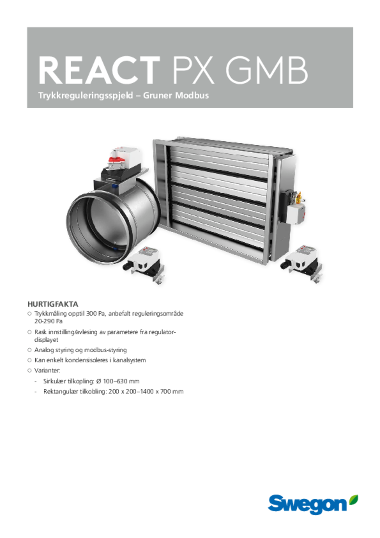 • Kan installeres i bÃ¥de tillufts- og fraluftssystemer.