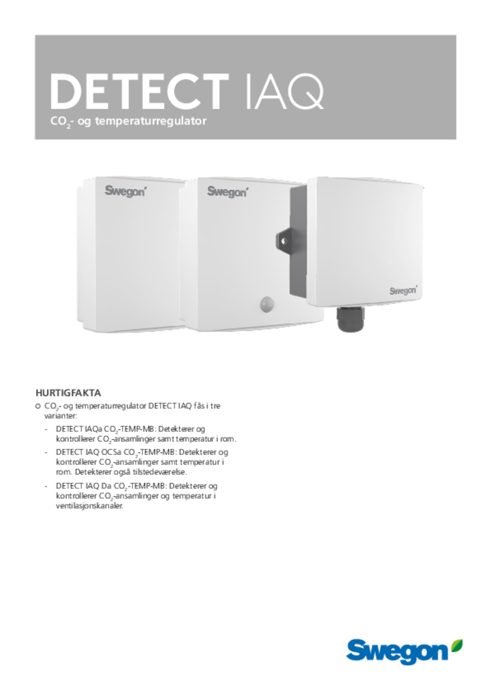 • CO2- og temperaturregulator DETECT IAQ fÃ¥s i tre varianter: