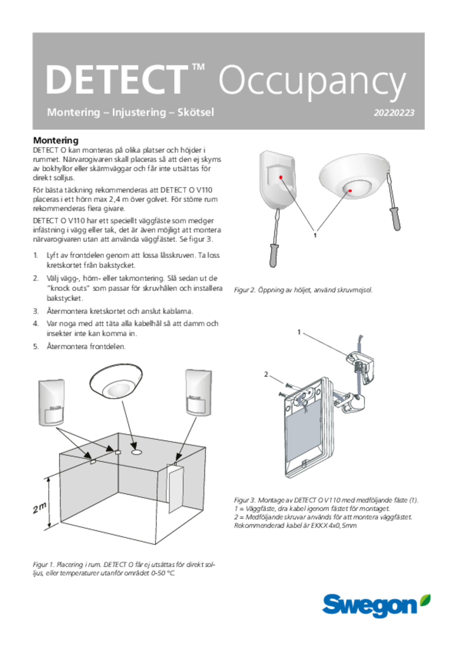 | Montering, injustering, skötsel (pdf 546.16kB) | DETECT Occupancy | FDV-manual | |
