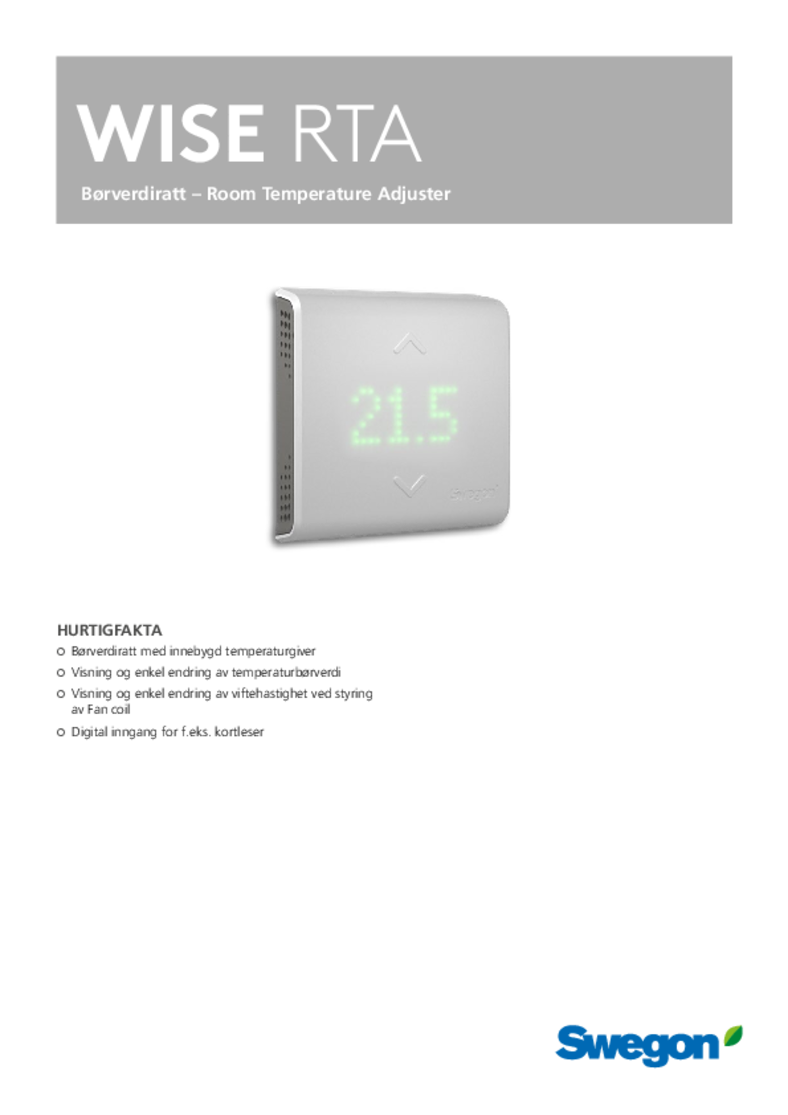 Børverdiratt - Room Temperature Adjuster (pdf 608.2kB) WISE RTAa Teknisk katalog