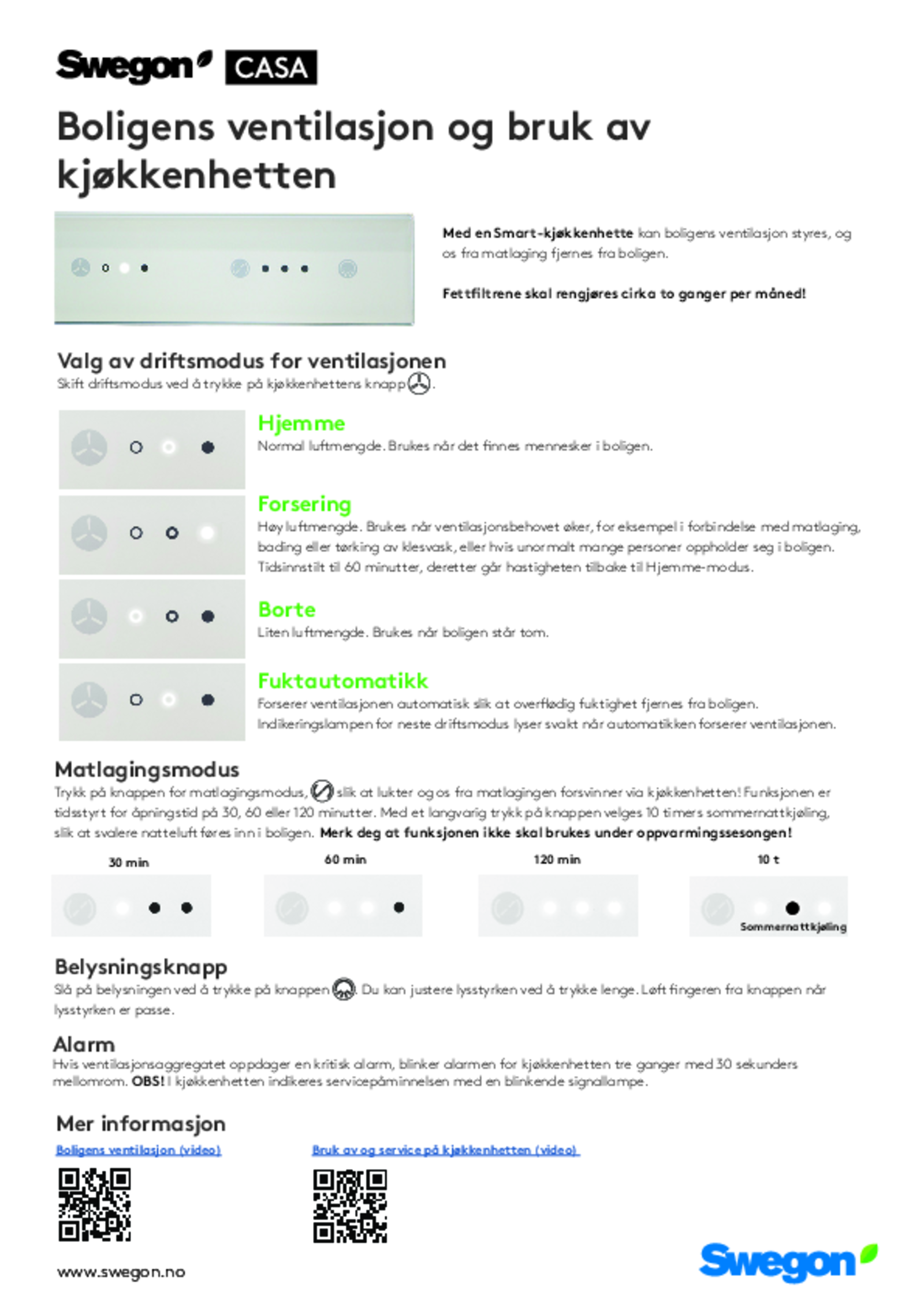 | Anbefalinger for rengjøring av kjøkkenhetten (pdf 190.36kB) | Swegon CASA | FDV-manual | |