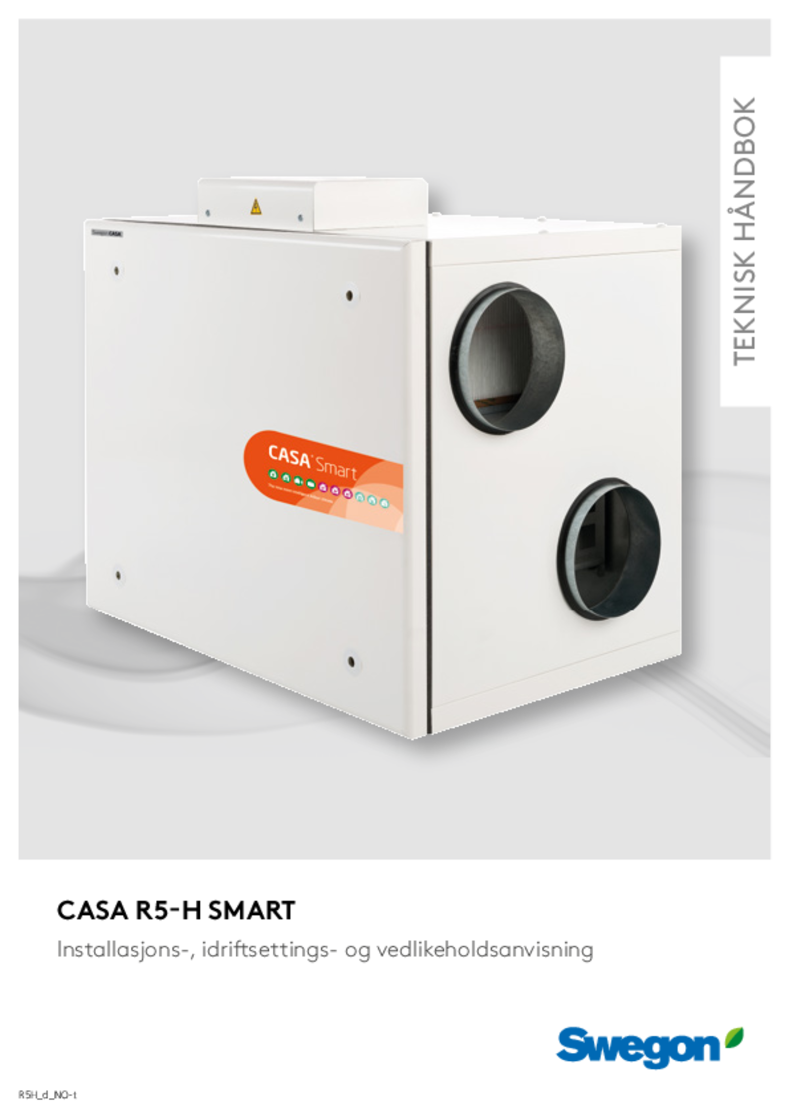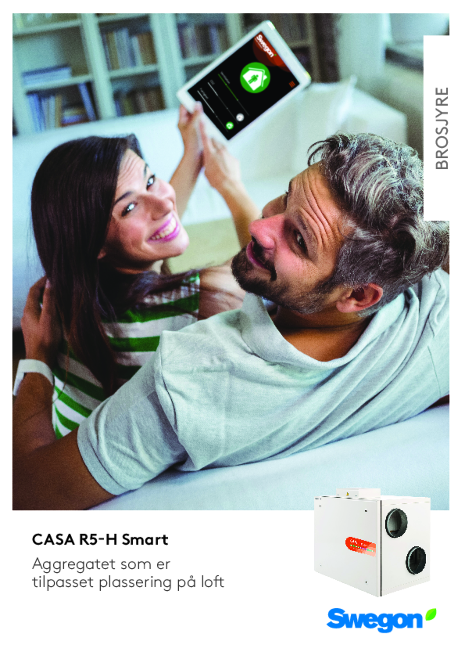 Boligaggregat (702 x 614 x 479 mm, Ø 160 mm) med roterende varmeveksler for eneboliger, små kontorer osv. (108-432 m3/h, 250 m2) Passer utmerket for loftsmontering i enebolig fordi den er tilpasset for transport opp gjennom loftsluken. Markedets mest intelligente luftfuktighetsstyring som standard. Utviklet, produsert og testet for vårt nordiske klima.