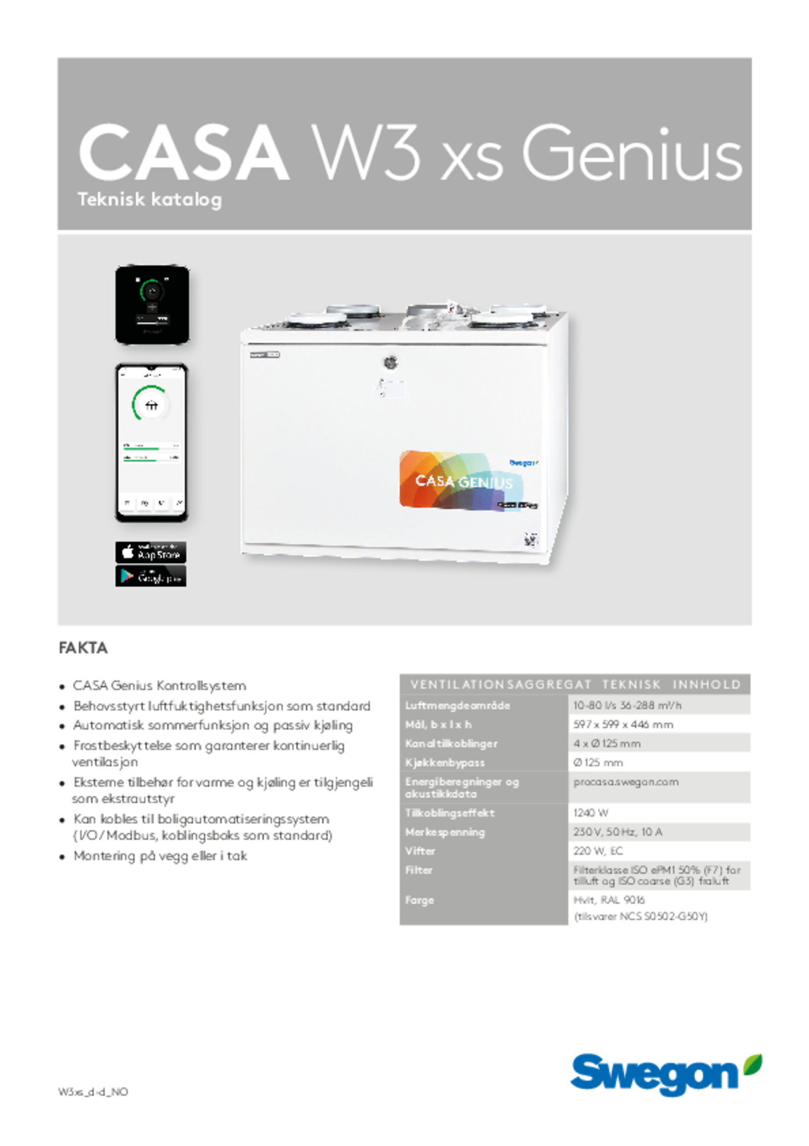 | CASA W3 Genius xs R 1240W RH | 36-288 | A | 1000 W | 500 W | 4 x Ø 125 mm + 1 x Ø 125 mm | 230 V / 10 A | 599 | 597 | 446 | 45 |