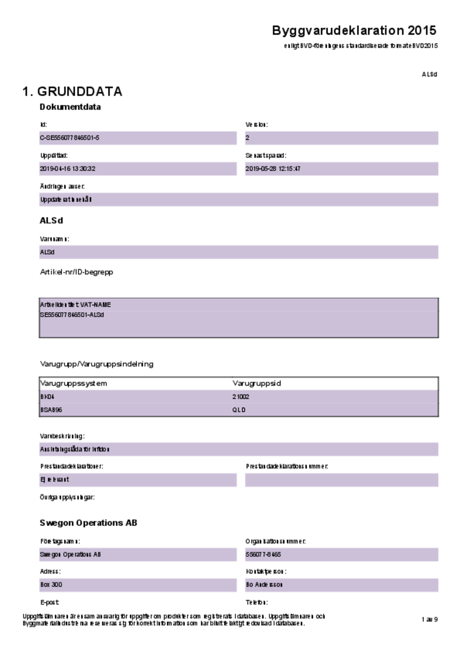 • Lydabsorbent er brannklassifisert B-s1, d0 i henhold til EN ISO 11925-2