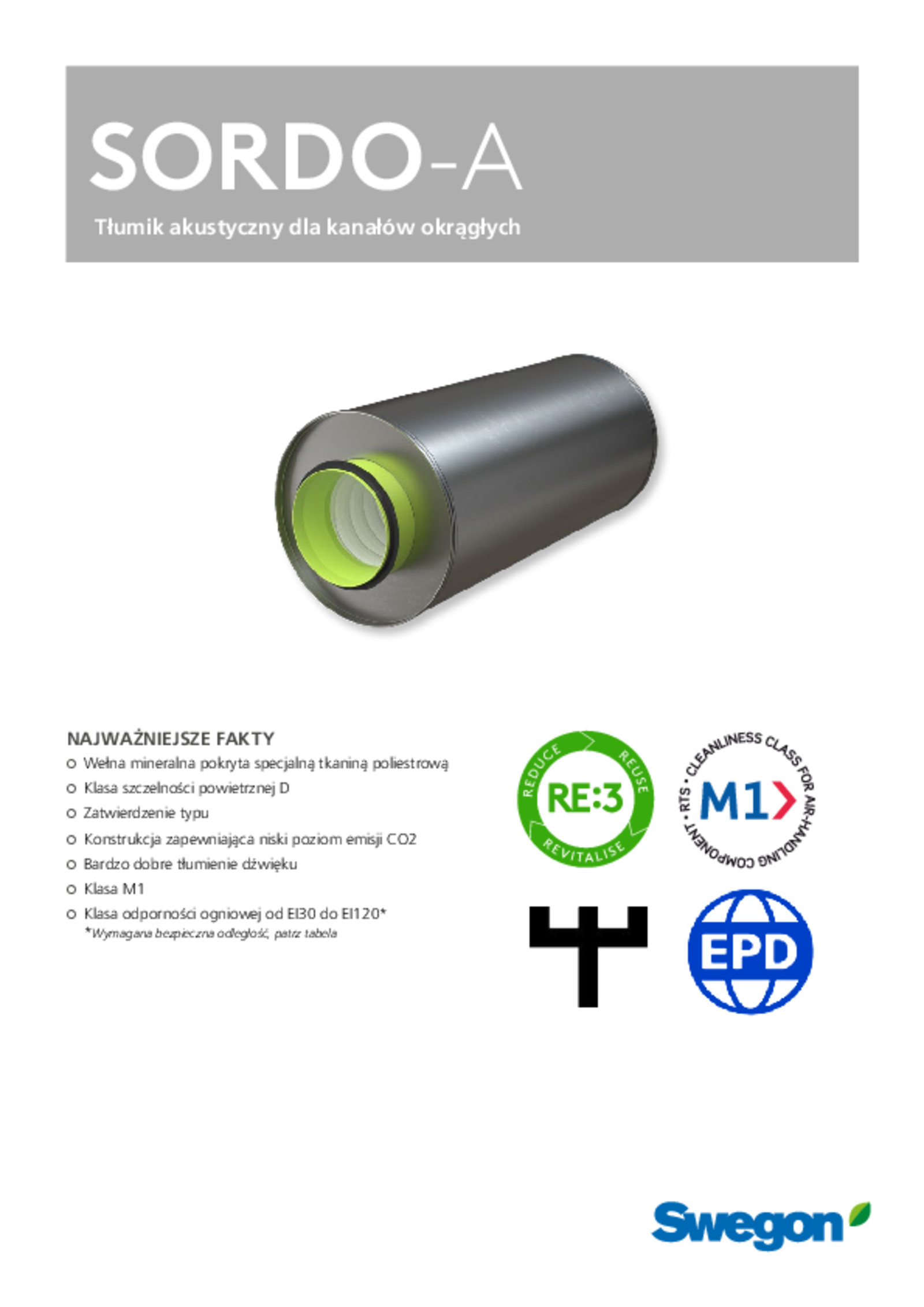Produkty SORDO-A stanowią element koncepcji RE:3 firmy Swegon, opartej na kluczowych zasadach gospodarki obiegu zamkniętego, na którą składają się RE:duce, RE:use i RE:vitalise. Modele SORDO-A są wykonane z wytwarzanej w sposób zrównoważony blachy o nazwie RRP, co oznacza „recycled and renewably produced” (pochodzące z recyklingu i wytwarzane ze źródeł odnawialnych). Zawartość stali pochodzącej z recyklingu wynosi co najmniej 75 procent. Co więcej, w procesie produkcji stosuje się piece łukowe wykorzystujące wyłącznie energię ze źródeł odnawialnych.