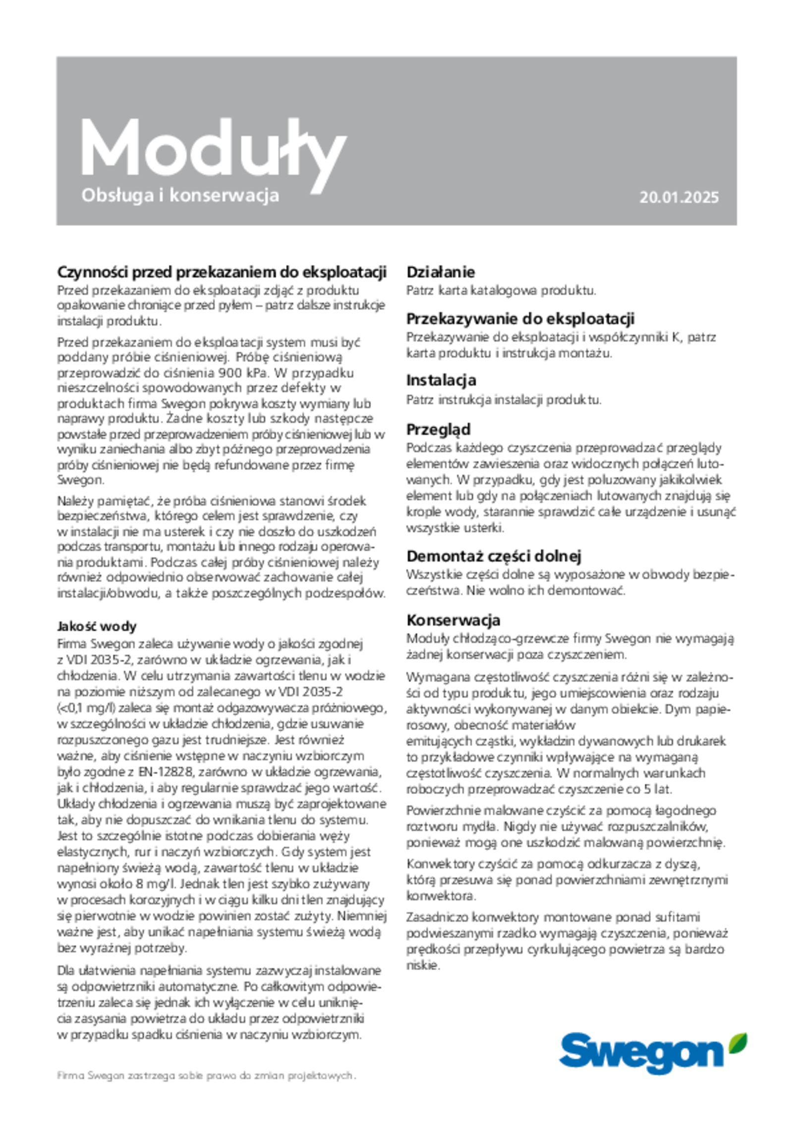 • Moduł chłodząco-grzewczy z wbudowanym regulatorem przepływu zmiennego