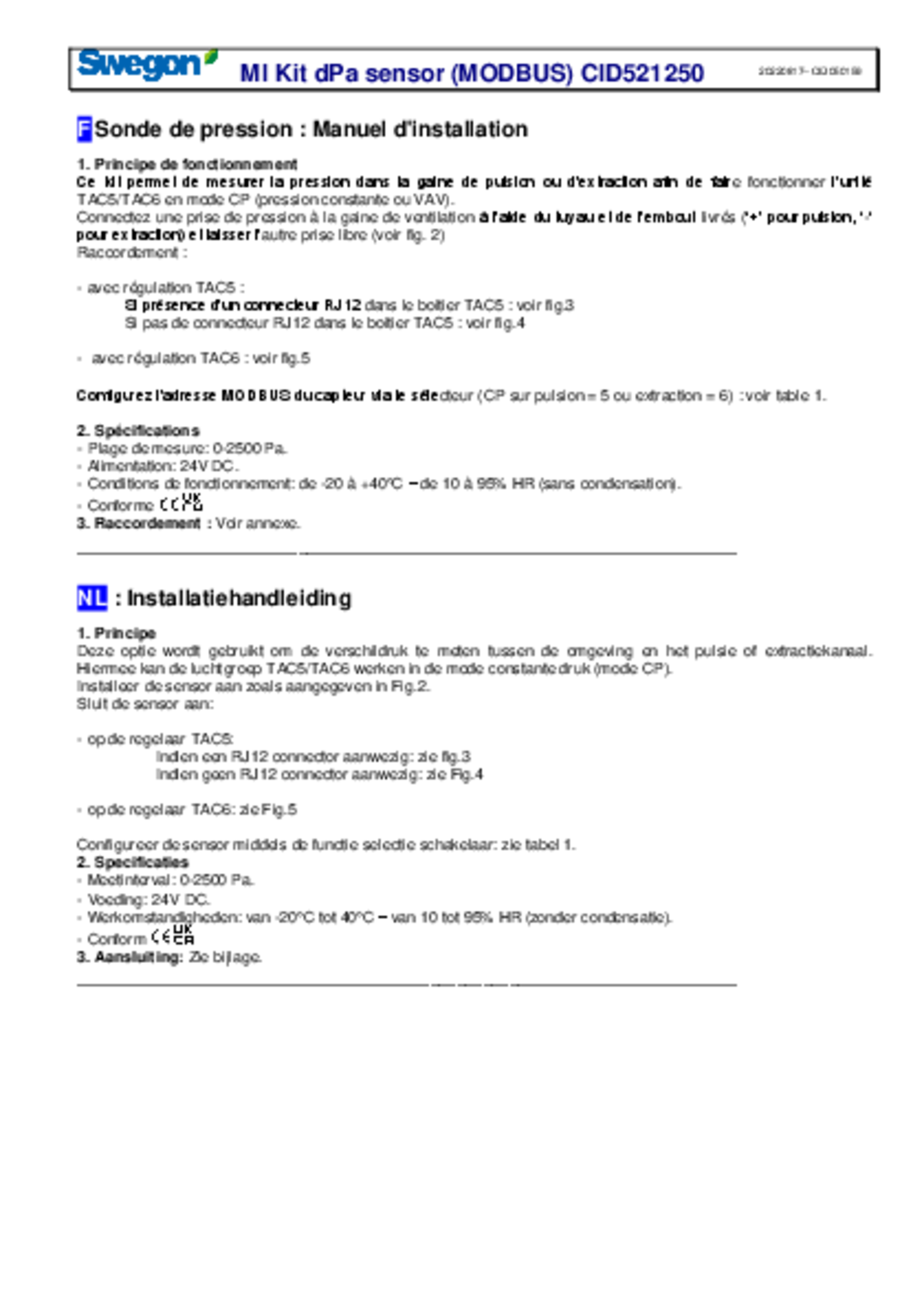 Installation manual kit dPa sensor MODBUS (pdf 341.31kB) TAC5-TAC6 Instrukcja