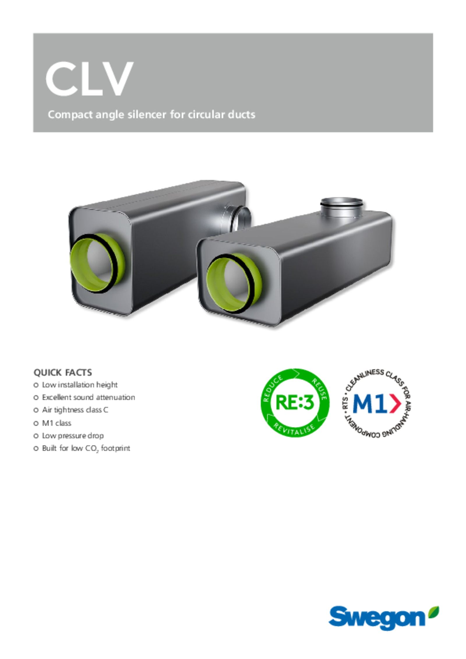 CLV is part of Swegon’s RE:3 concept based on the key principles of circularity, and which consists of RE:duce, RE:use and RE:vitalise. CLV is made with sustainable sheet metal called RRP, where RRP stands for “recycled and renewably produced”. The steel has a recycled steel content of at least 75 per cent. In addition, the manufacturin process uses electric arc furnaces that run on 100 per cent renewable energy.