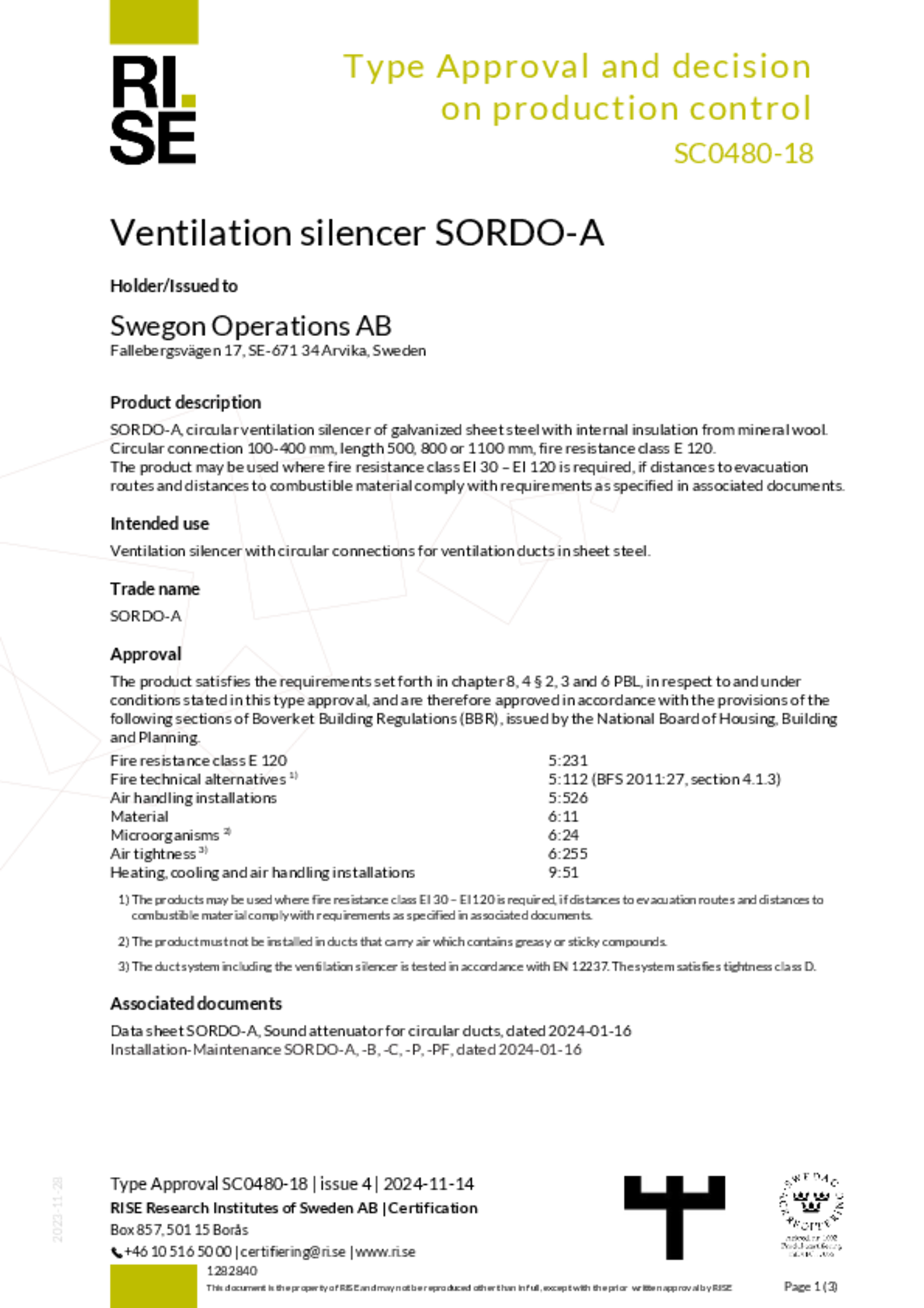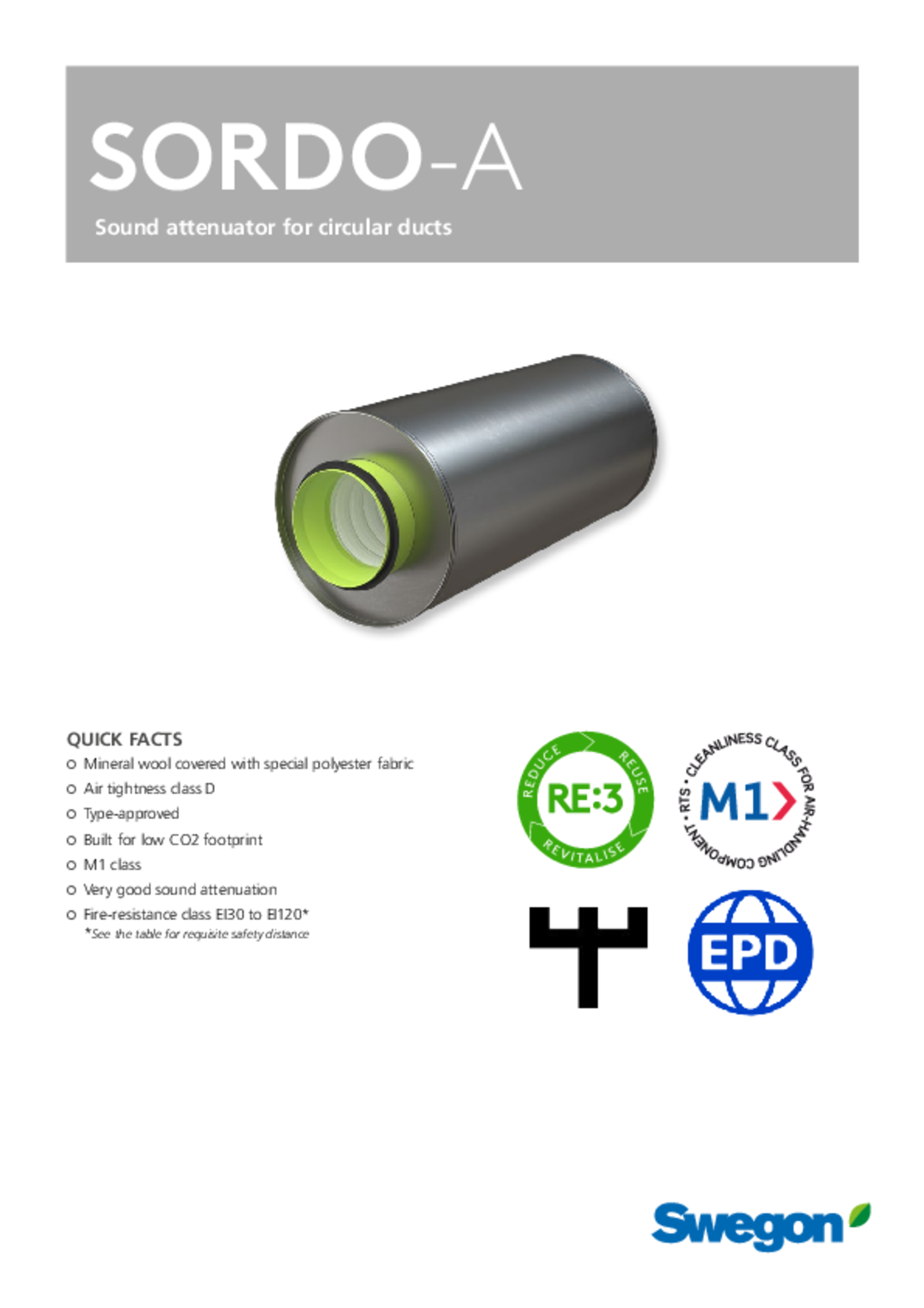 SORDO-A is part of Swegon’s RE:3 concept based on the key principles of circularity, and which consists of RE:duce, RE:use and RE:vitalise. SORDO-A is made with sustainable sheet metal called RRP, where RRP stands for “recycled and renewably produced”. The steel has a recycled steel content of at least 75 per cent. In addition, the manufacturing process uses electric arc furnaces that run on 100 per cent renewable energy.