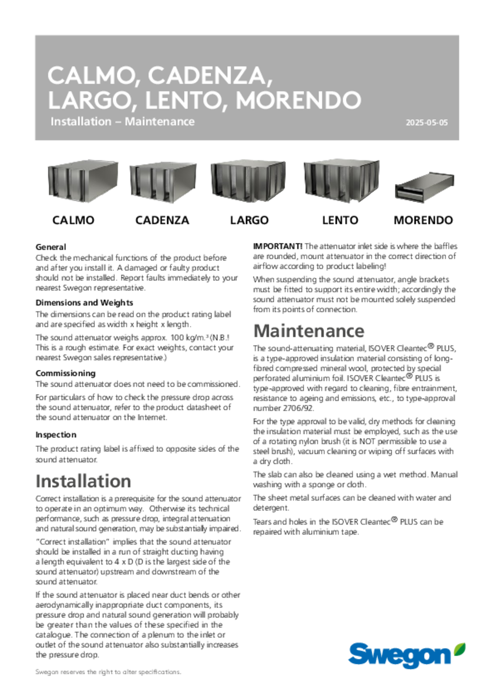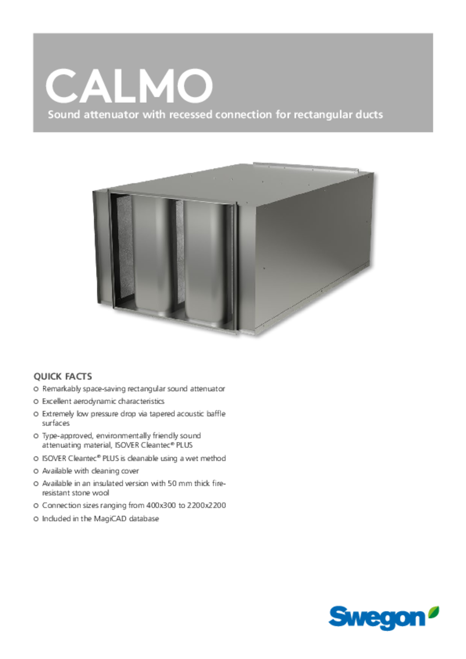 CALMO is, due to its unique design with connection facing the side baffles, is suitable for use both in ducts and in direct connection to the air handling unit.