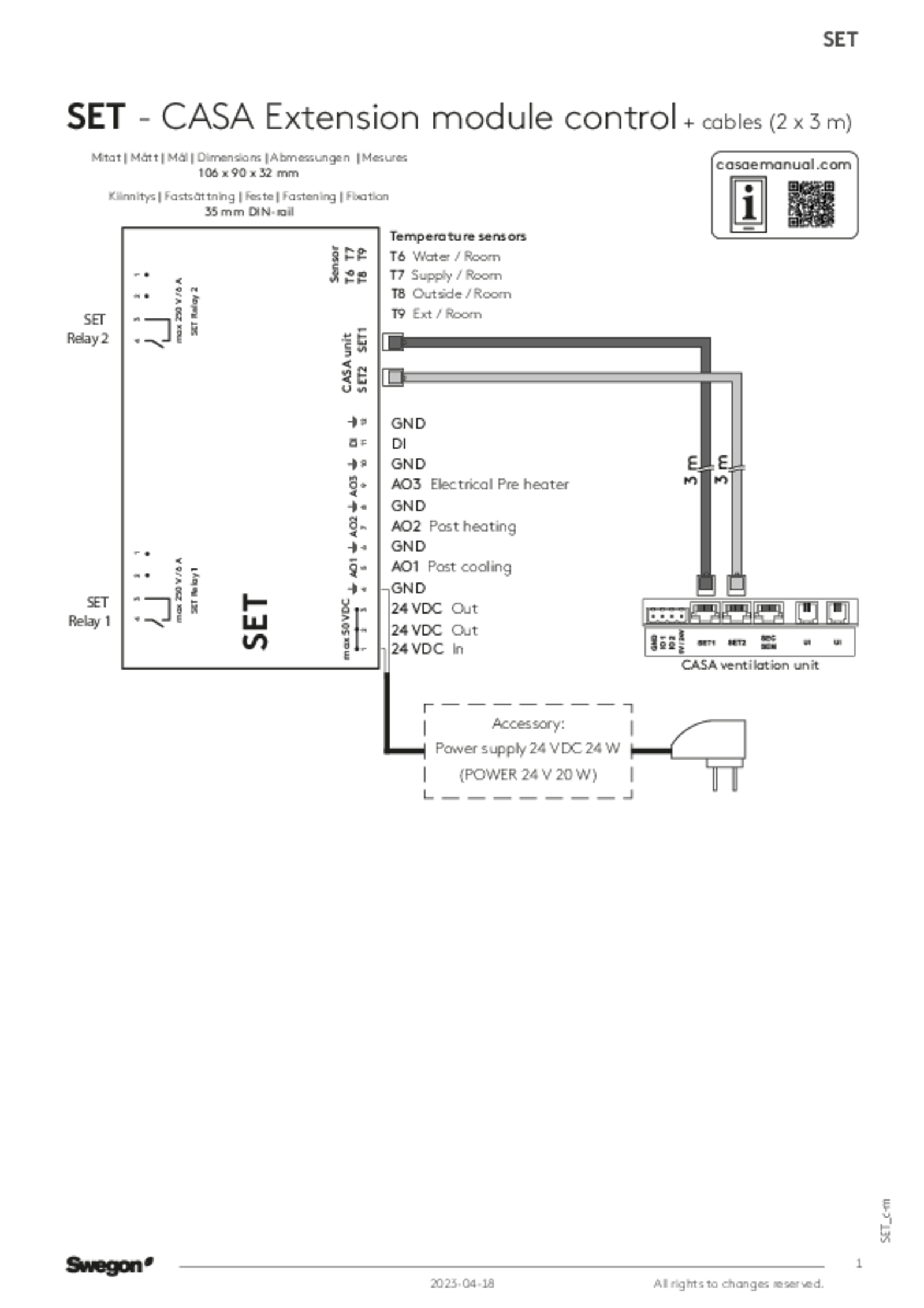 • Permits straightforward installation and control of external accessories from one Swegon CASA ventilation unit