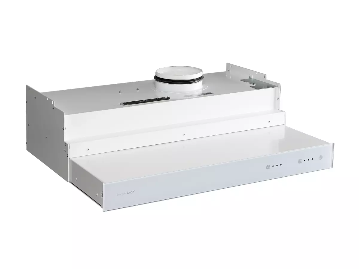 CASA SALSA is an extensible cooker hood that integrates perfectly in line with the kitchen cabinets when not in use and is pulled out during the cooking. The smooth surfaces and wash proof metal grease filters are easy to keep clean. The lighting in the hood is made up of maintenance-free LED lights with adjustable brightness. The cooker hood with voltage protection (24 V) is equipped with a mains transformer – its power consumption is therefore low and the hood is always safe for the user. All electrical connections are located above the hood and are therefore quick and easy to connect during the installation phase.