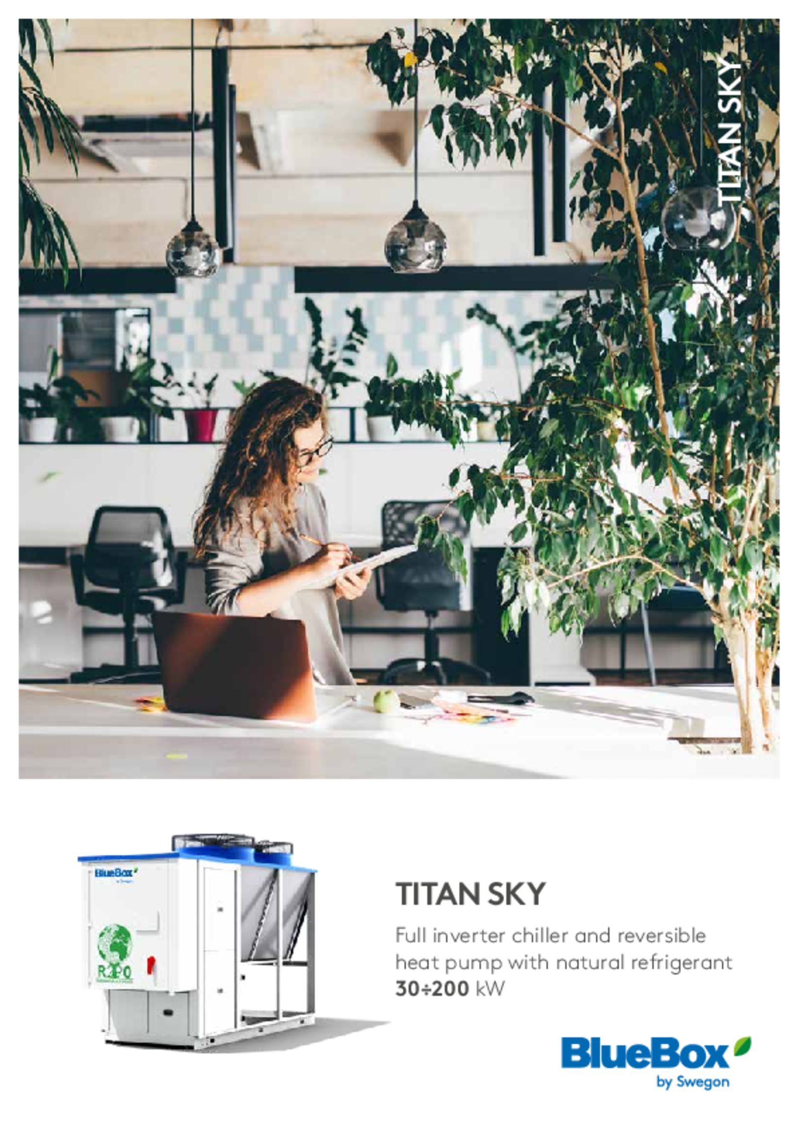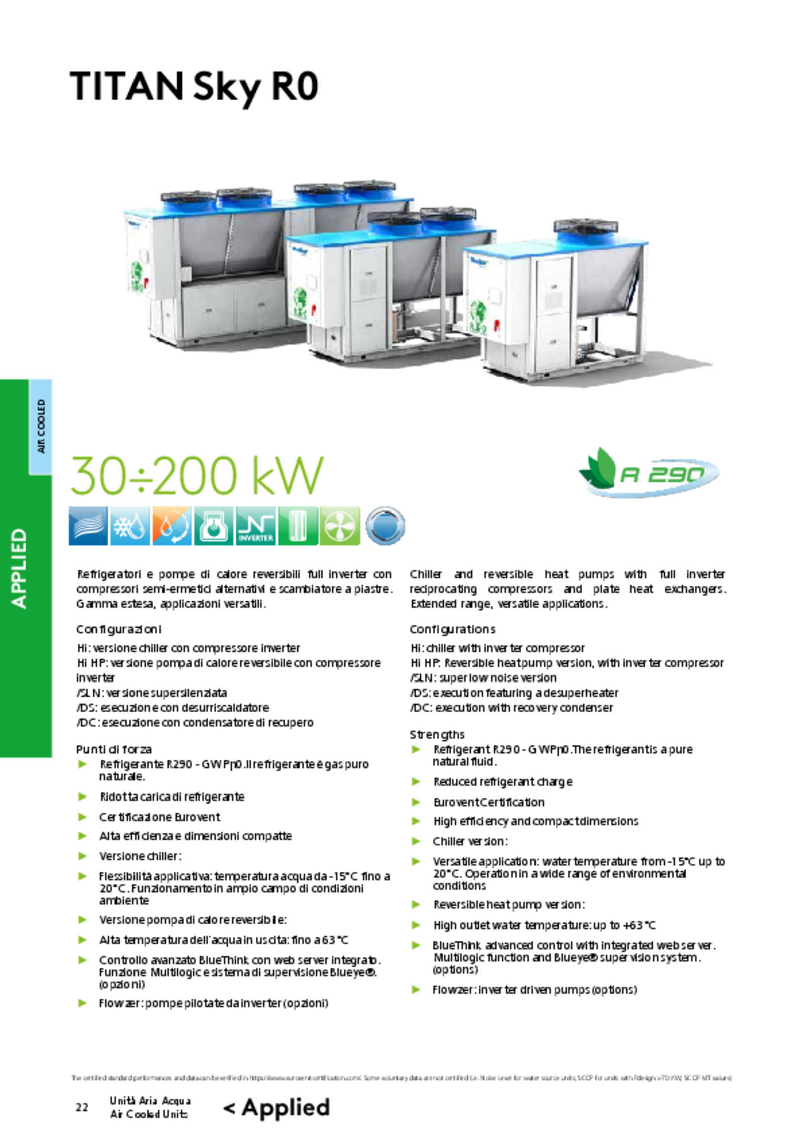 Chiller and reversible heat pumps with full inverter reciprocating compressors and plate heat exchangers. Extended range, versatile applications. R290, 30÷200kW