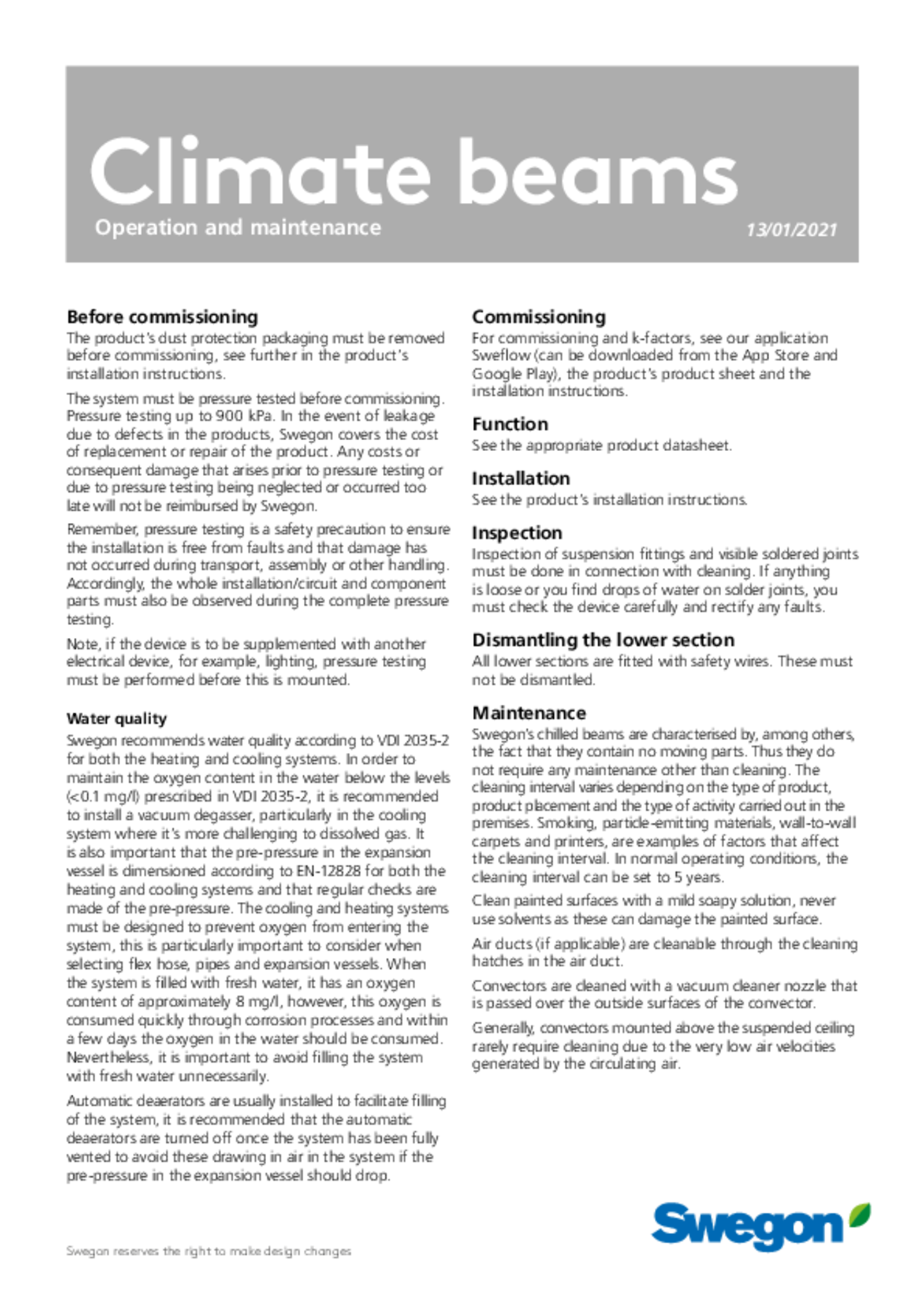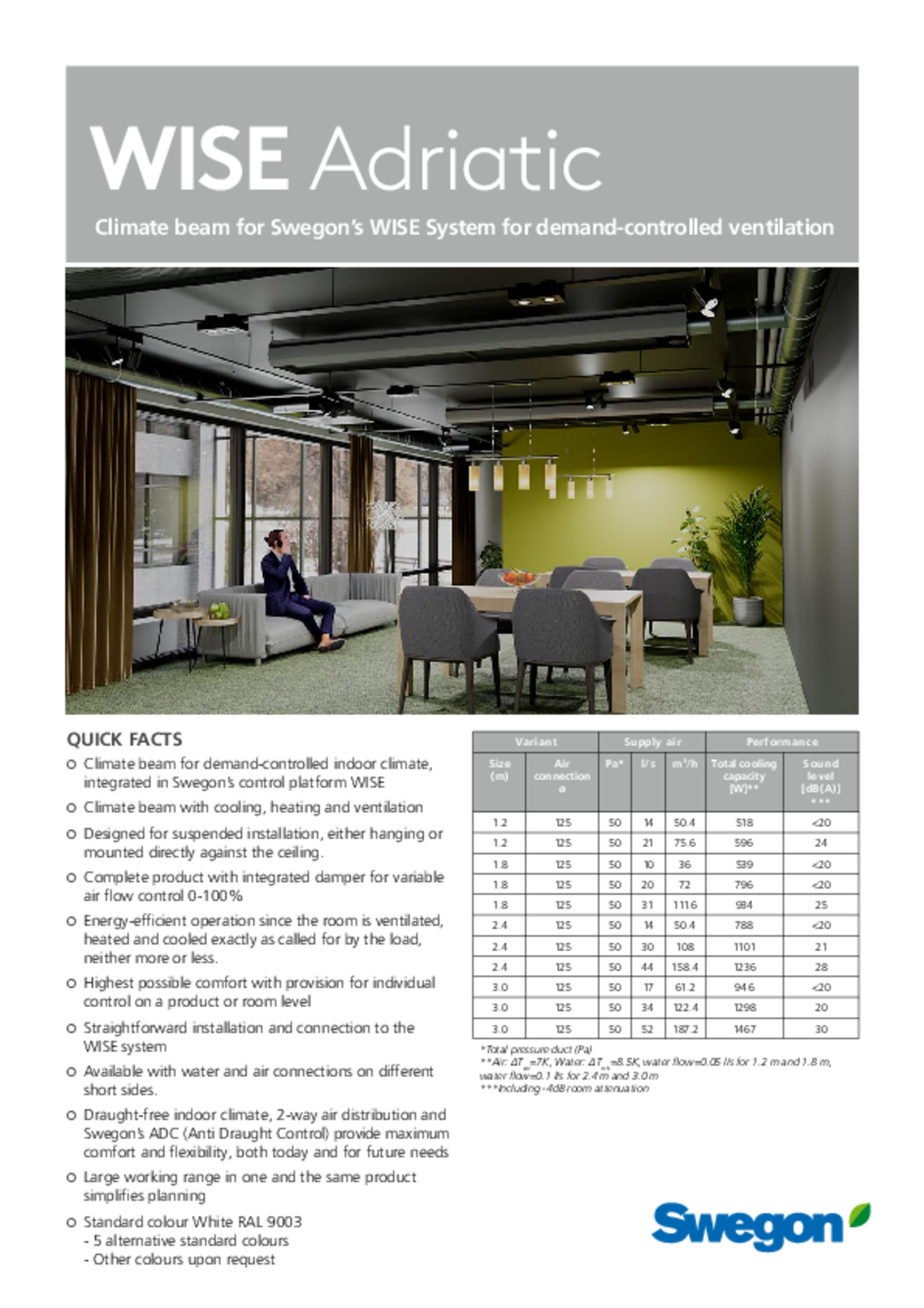 - Draught-free indoor climate, 2-way air distribution and Swegon’s ADC (Anti Draught Control) provide maximum comfort and flexibility, both today and for future needs