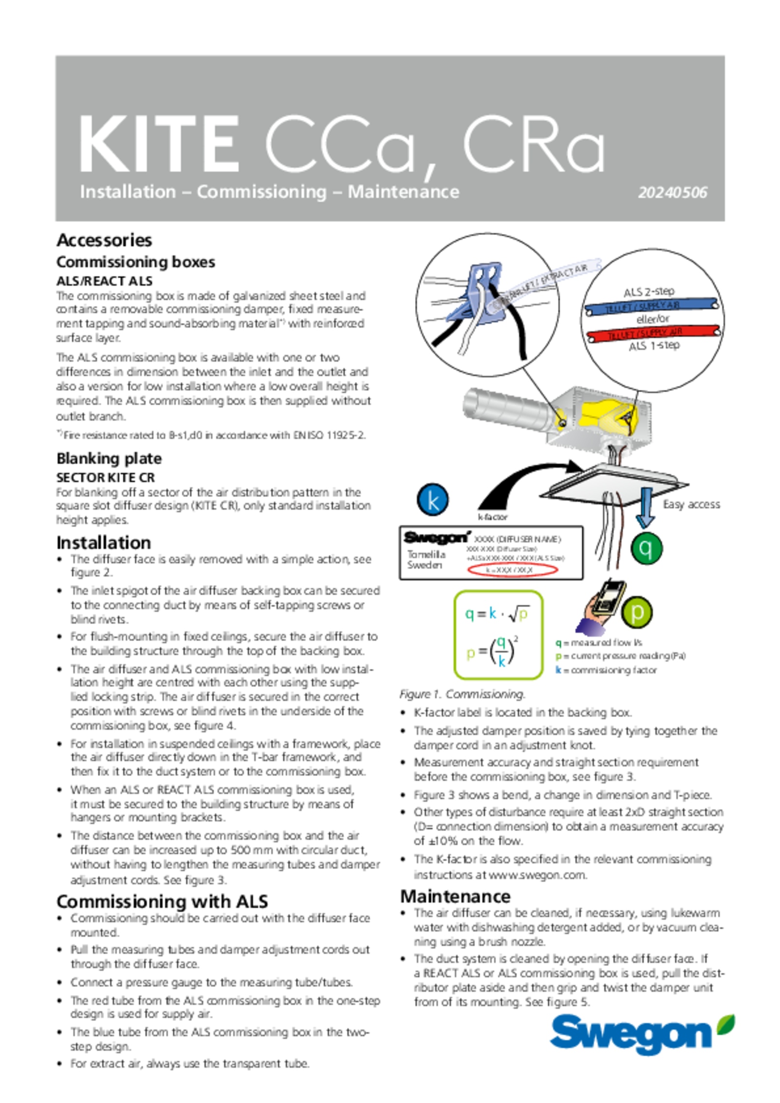 - Used together with REACT ALS commissioning box for variable flow regulation