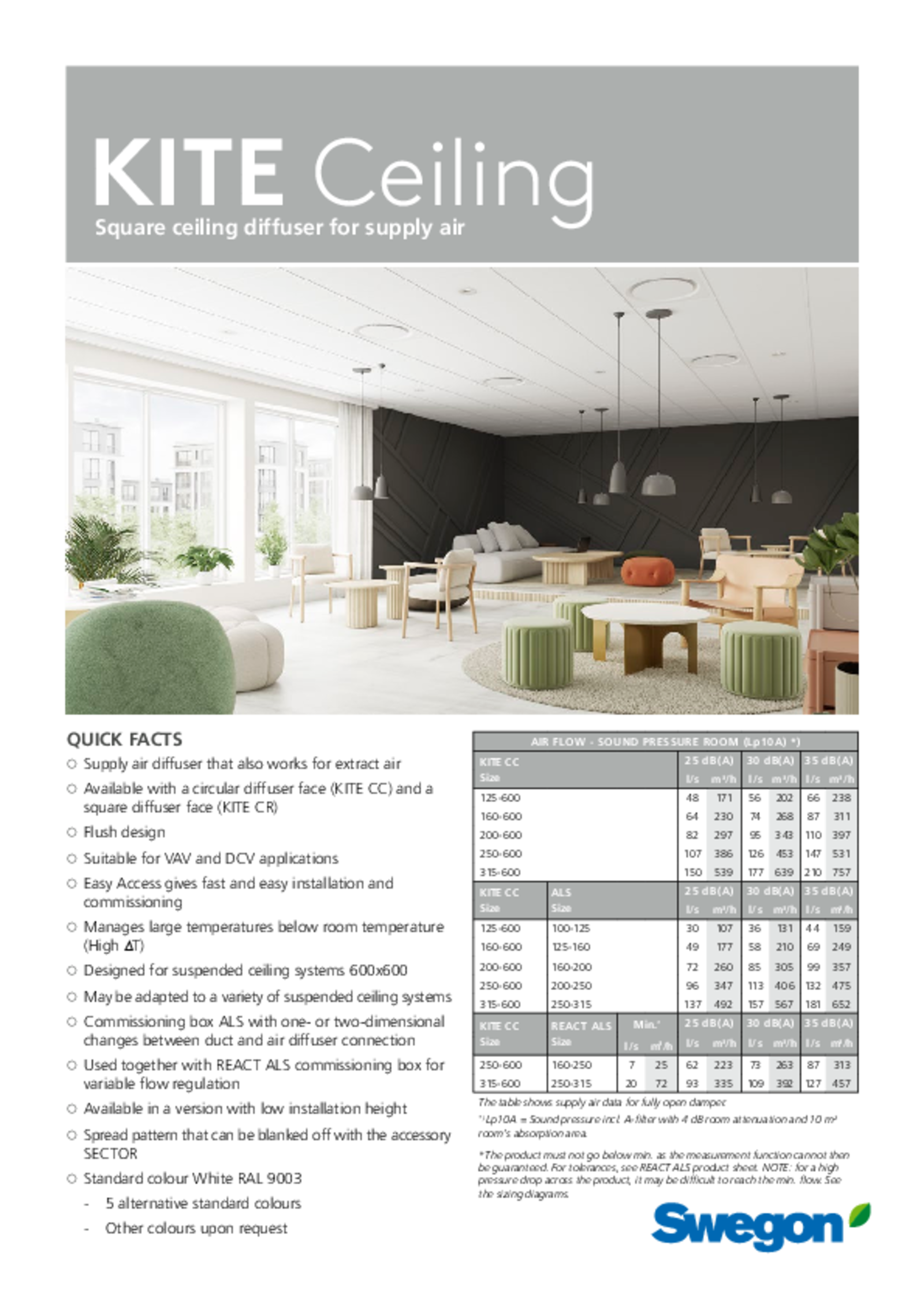 - Available with a circular diffuser face (KITE CC) and a square diffuser face (KITE CR)