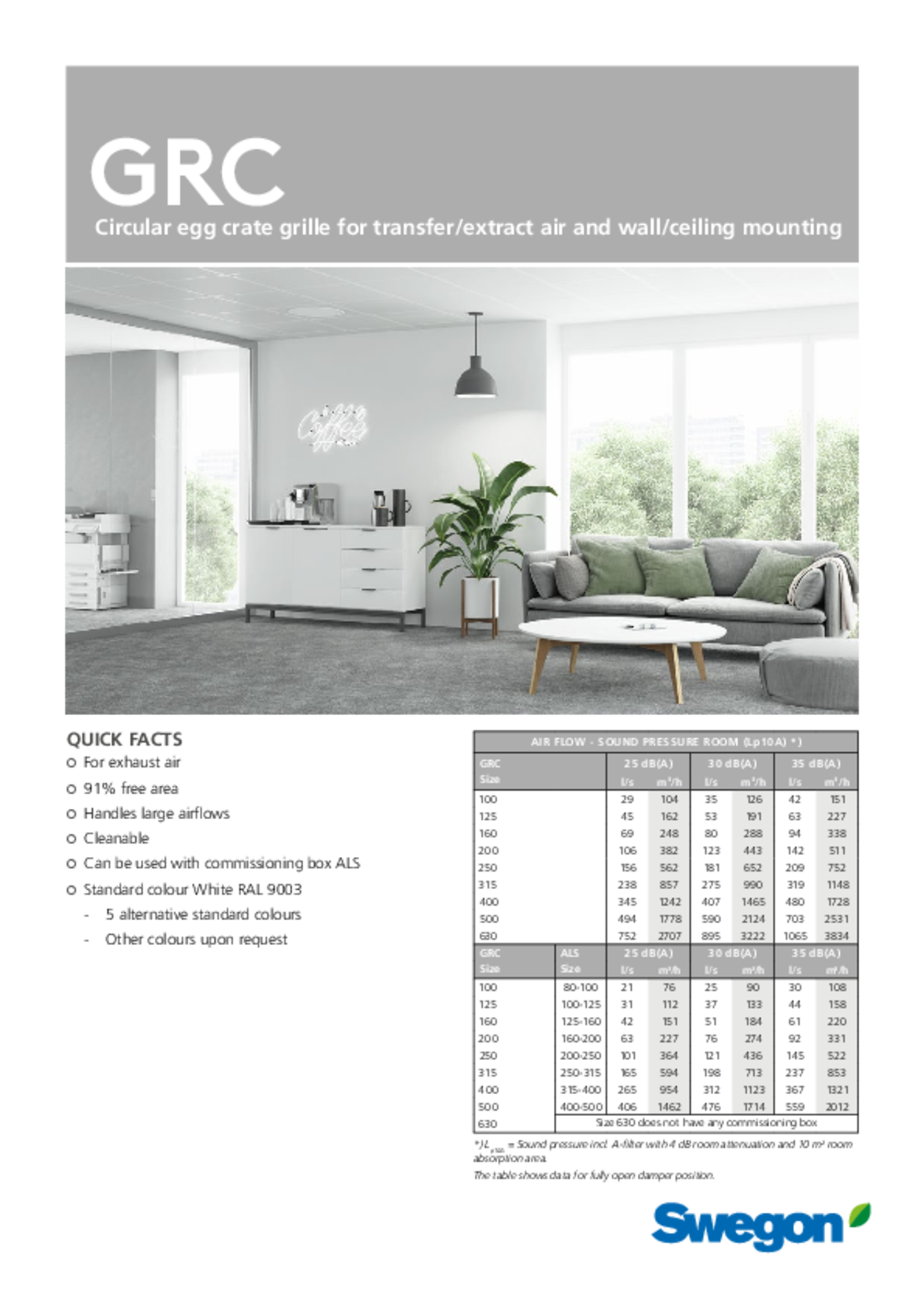 Circular egg crate grille for extract air and wall/ceiling mounting