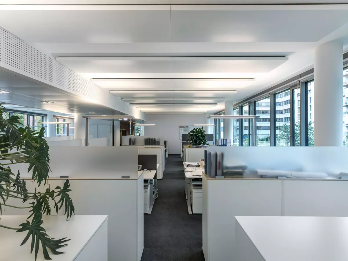 In order to satisfy the acoustic requirements, acoustic fleece is bonded in the back of the ceiling panels. In particularly sensitive areas, additional insulation strips can be inserted at the side of the coil to increase sound absorption without reducing the cooling capacity.