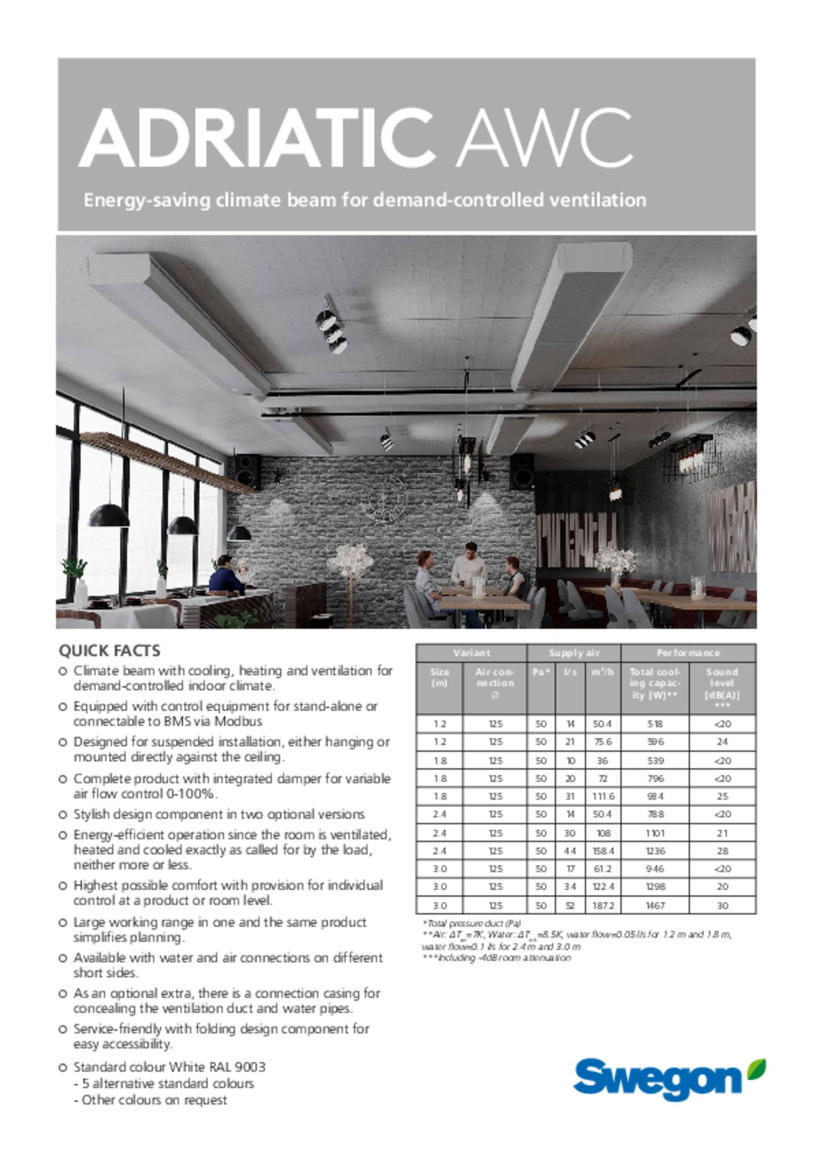 - Complete product with integrated damper for variable air flow control 0-100%