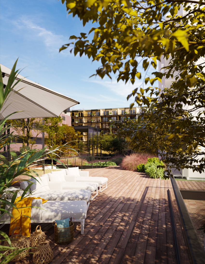 Climate compensation for COâ‚‚ emissions emitted during construction is included in the residents’ purchase of the apartment. The homes’ climate impact is thereby already accounted for.