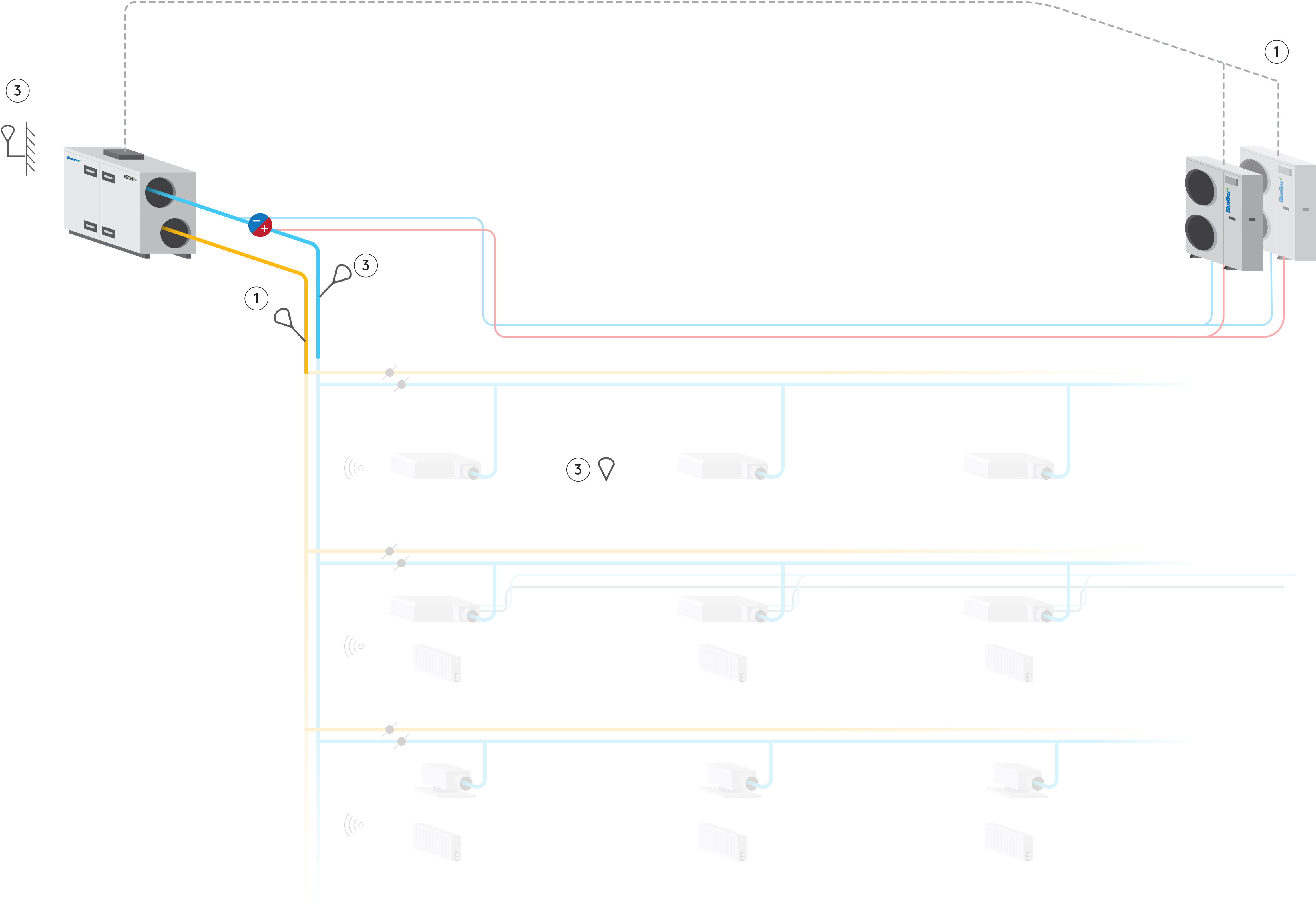 • When combining this solution with a VAV/DCV system (pressure-controlled GOLD), minimum airflow demand for the chiller/heatpump to work properly must be respected (see manual below).