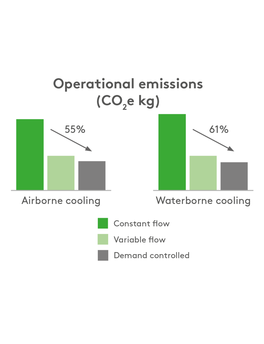 Less energy consumption also means a lower climate footprint. With a demand controlled solution, CO2 emissions can be reduced by up to 61%, making it an effective way to contribute to a more sustainable future.