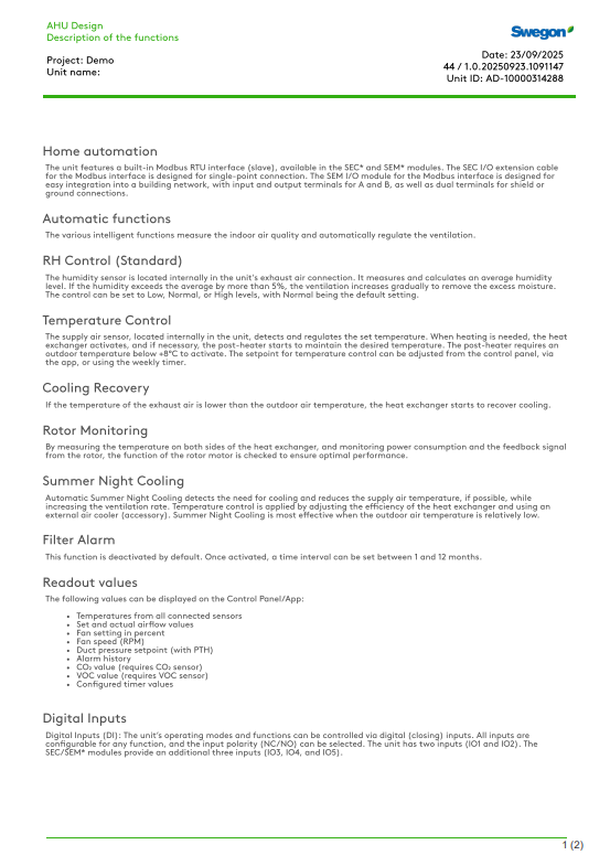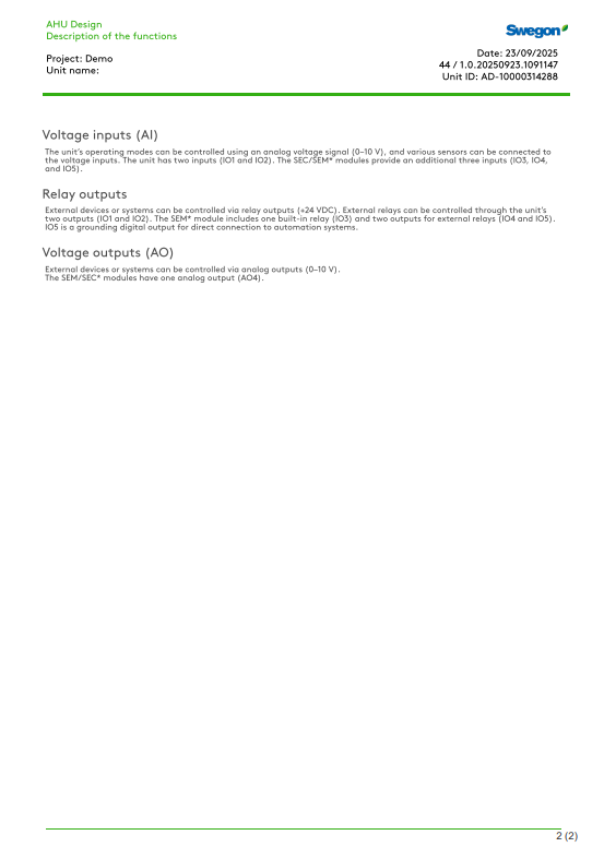 Improvement: Functional description printout for CASA products is now available un AHU Design. (34650)