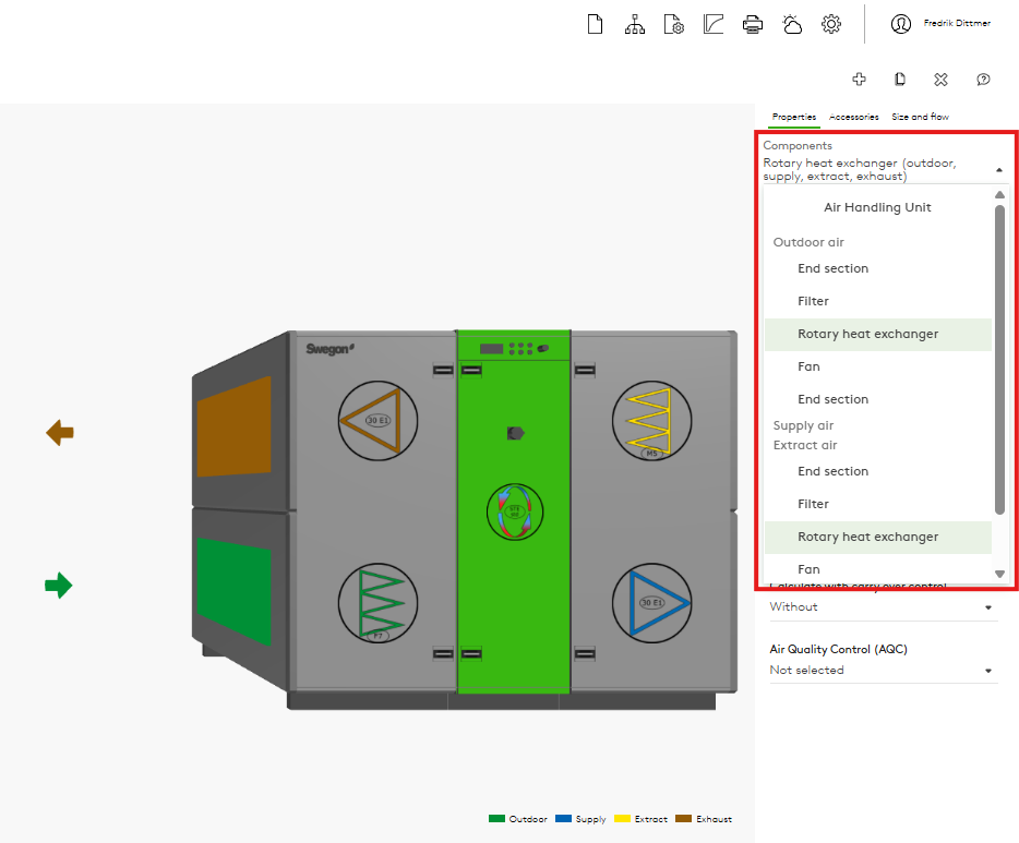 Improvement: New dropdown list for selecting components in AHU Design.