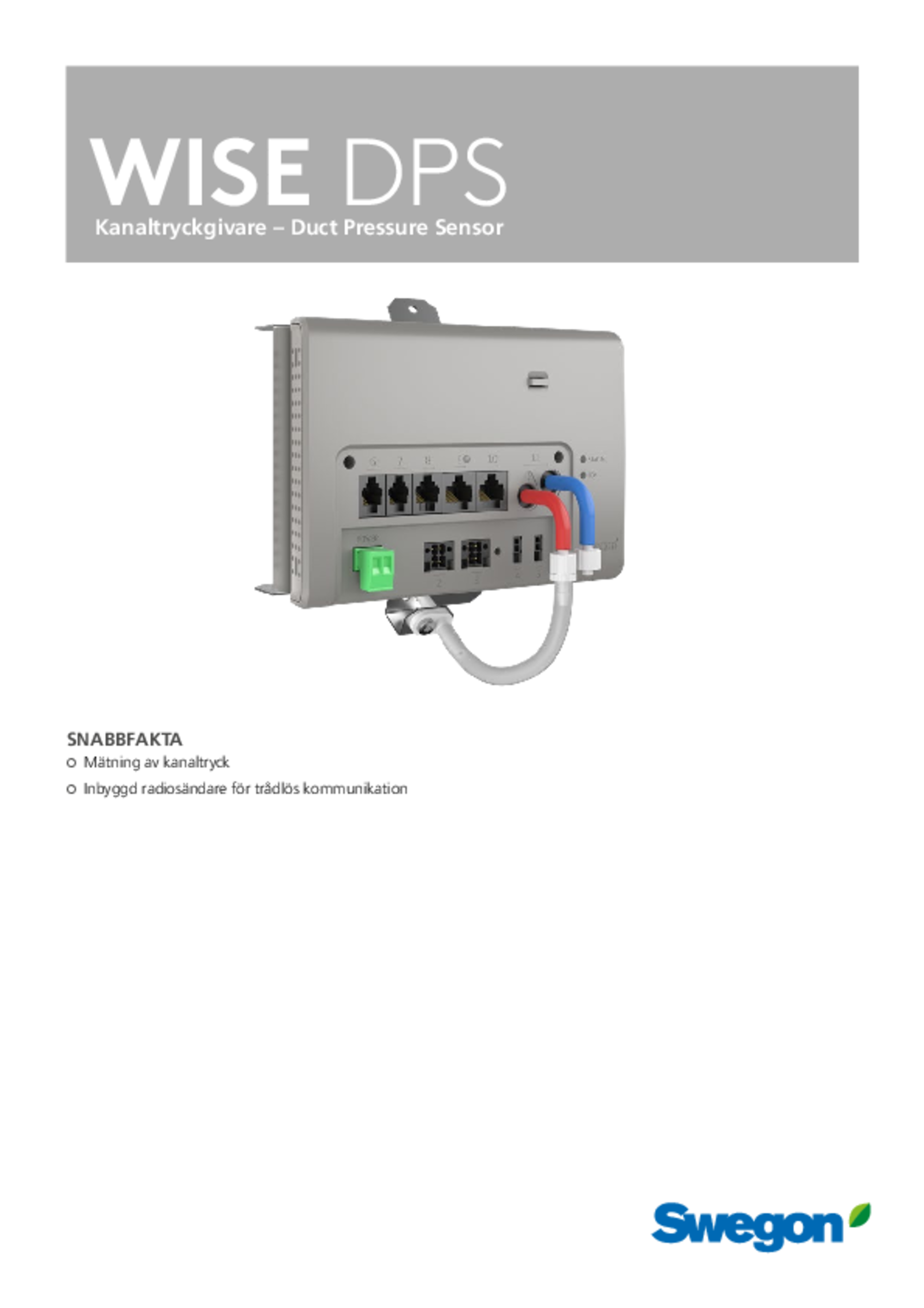 | Kanaltryckgivare – Duct Pressure Sensor (pdf 600.33kB) | WISE DPS b | Teknisk katalog |