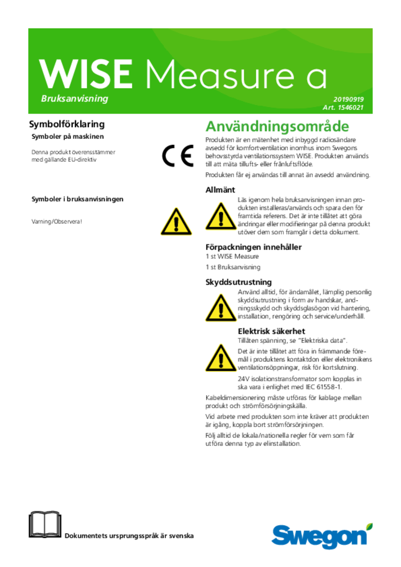 | Bruksanvisning (pdf 1.59MB) | WISE Measure a | IOM-manual | |