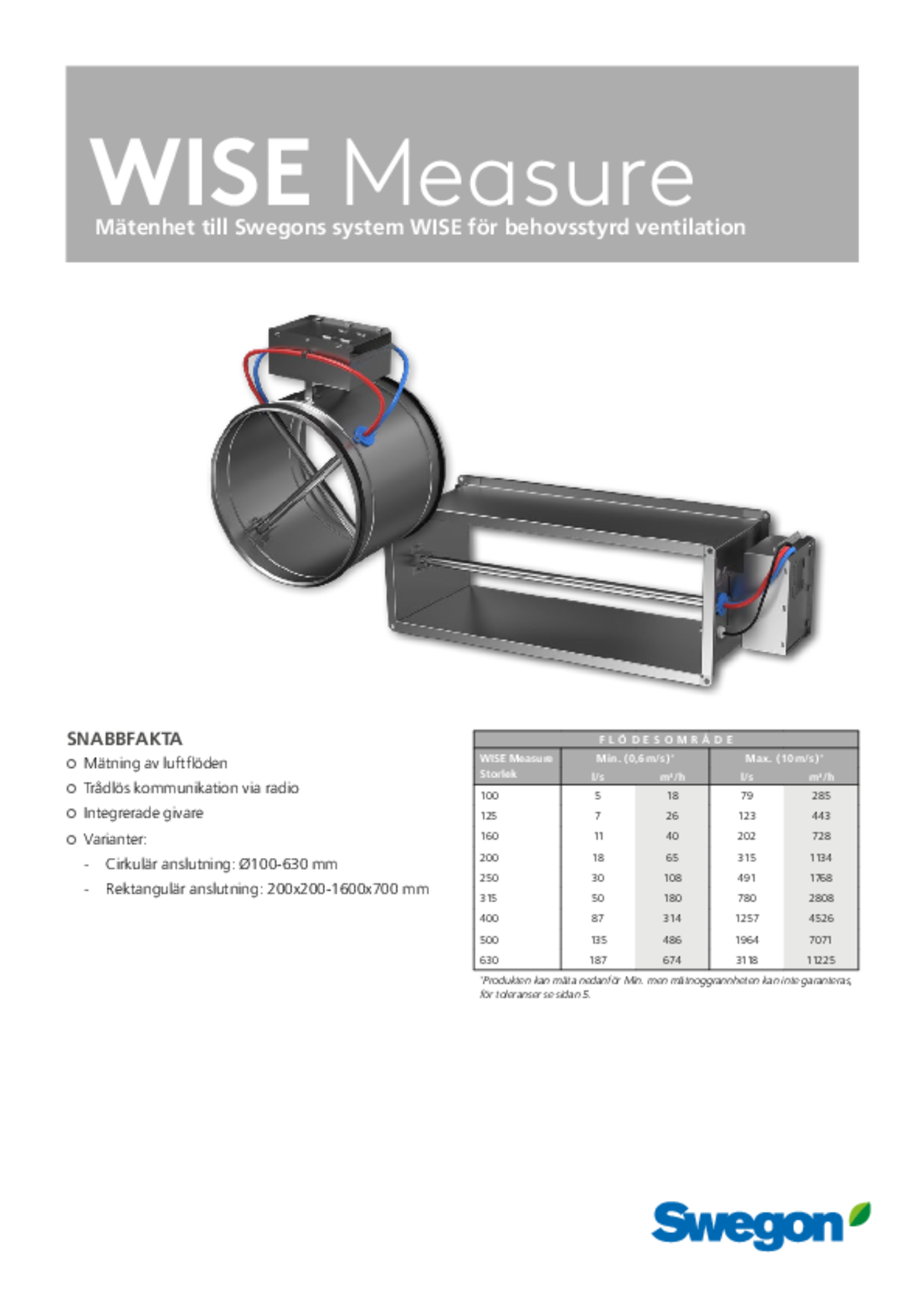 | Mätenhet till Swegons system WISE för behovsstyrd ventilation (pdf 1.04MB) | WISE Measure a | Teknisk katalog | |