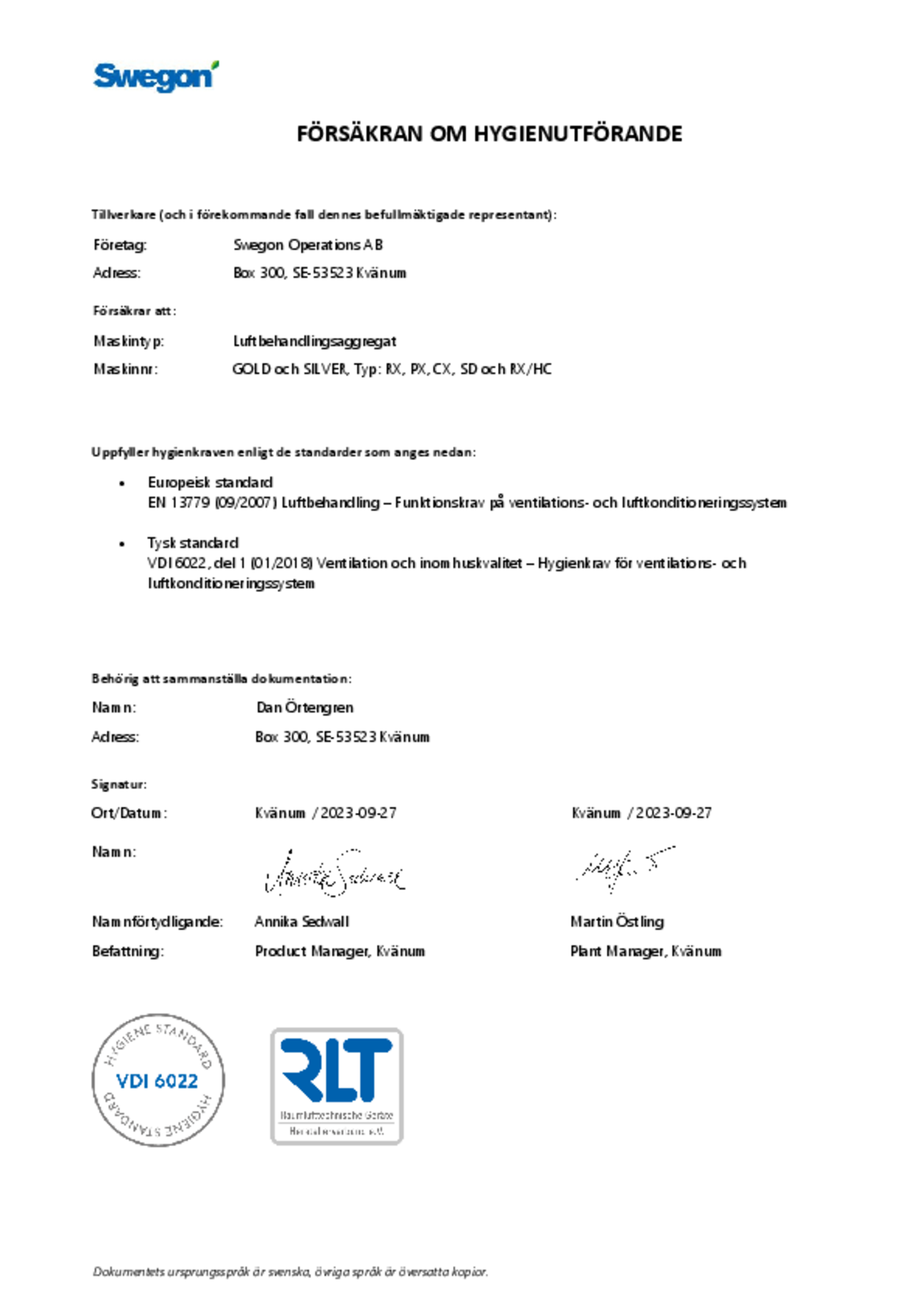- Max. luftflöde 18 112 m³/h (Ecodesign)