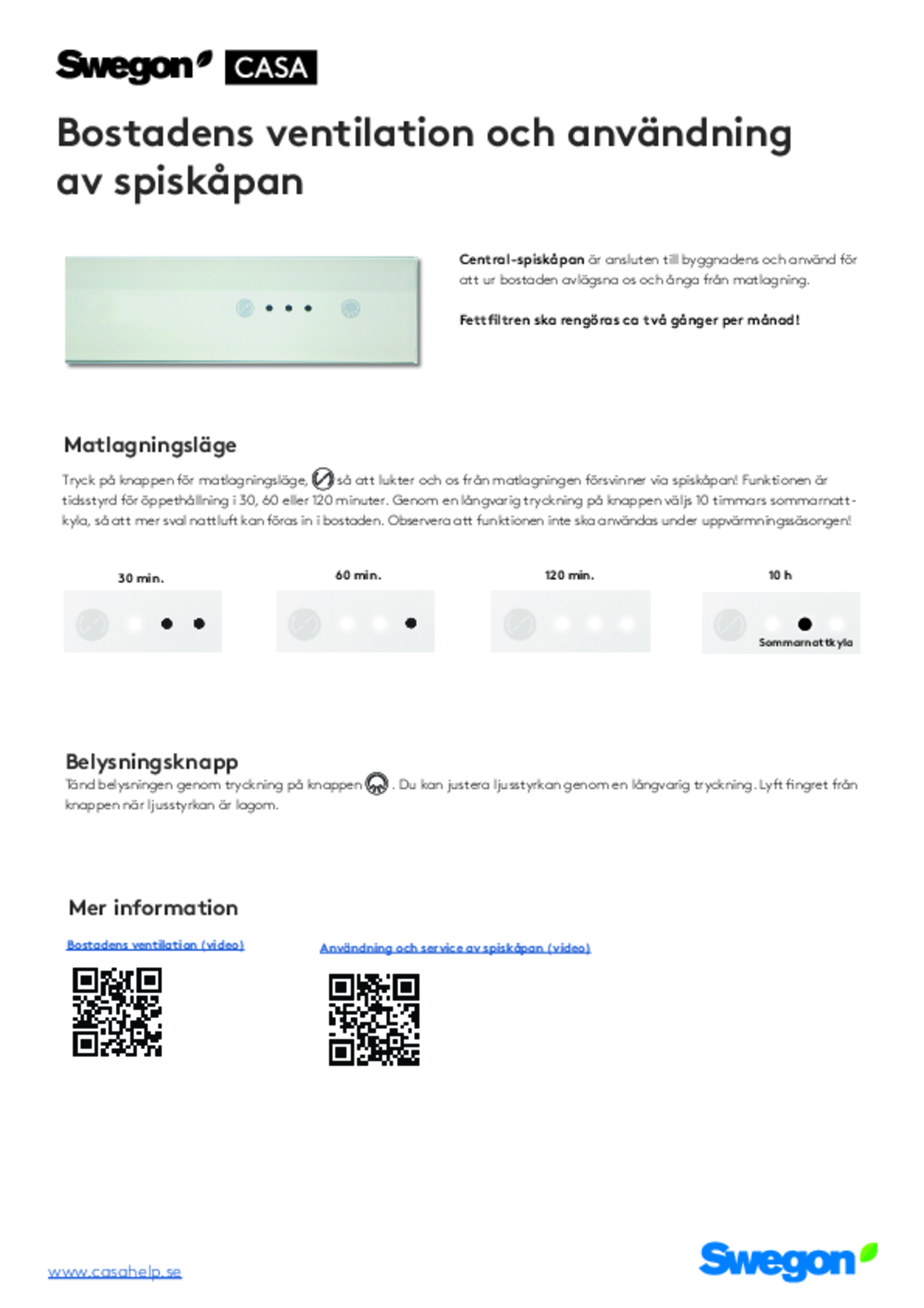 • SpiskÃ¥pa för centraliserade ventilationssystem