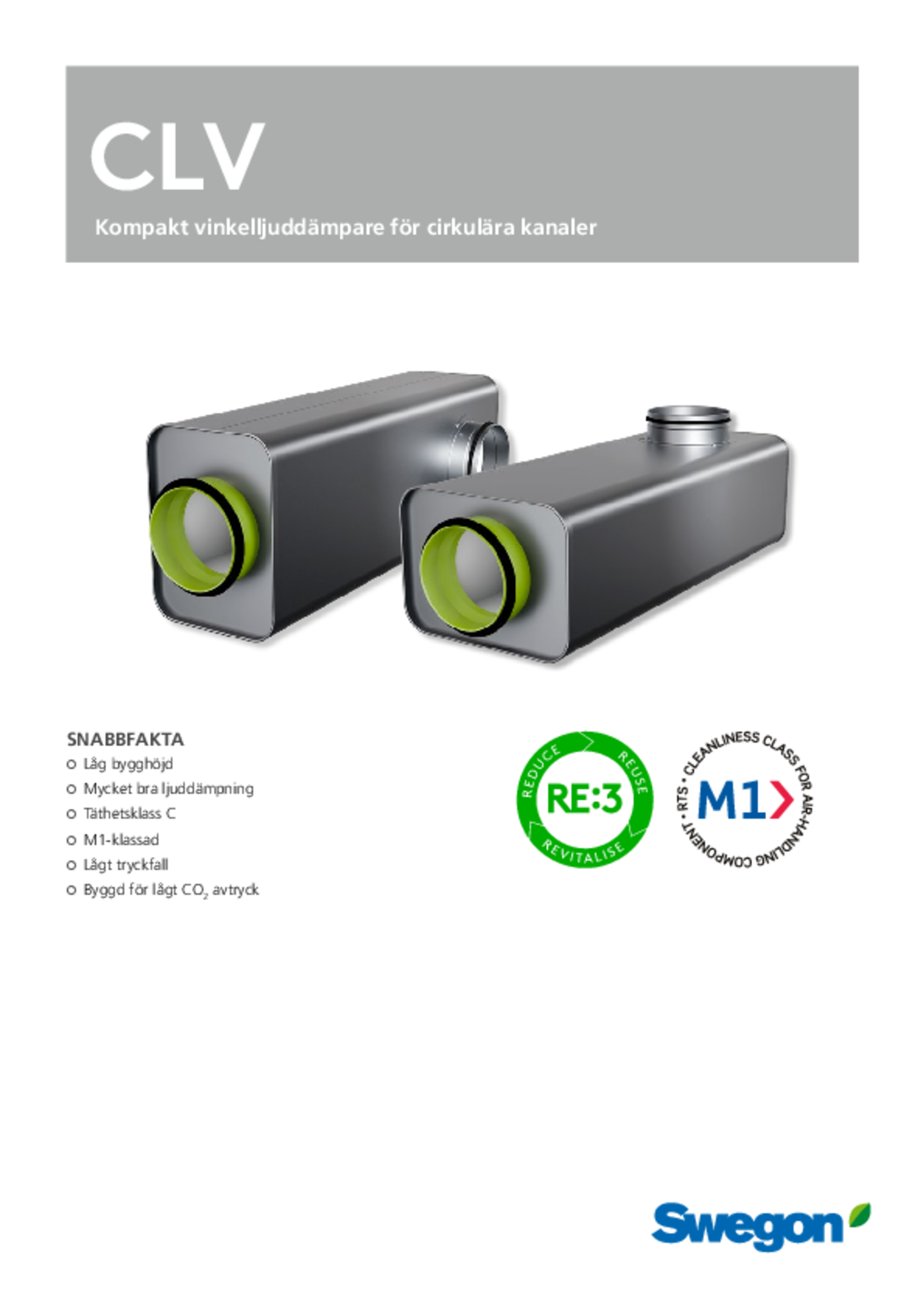 CLV ingår i Swegons koncept RE:3 baserat på cirkularitetens nyckelprinciper, och som består av RE:duce, RE:use och RE:vitalise. CLV tillverkas med hållbar plåt kallat RRP, där RRP står för ”recycled and renewably produced”. Stålet har en andel återvunnet stål på minst 75 procent. Dessutom använder tillverkningsprocessen ljusbågsugnar som går på 100 procent förnybar energi.