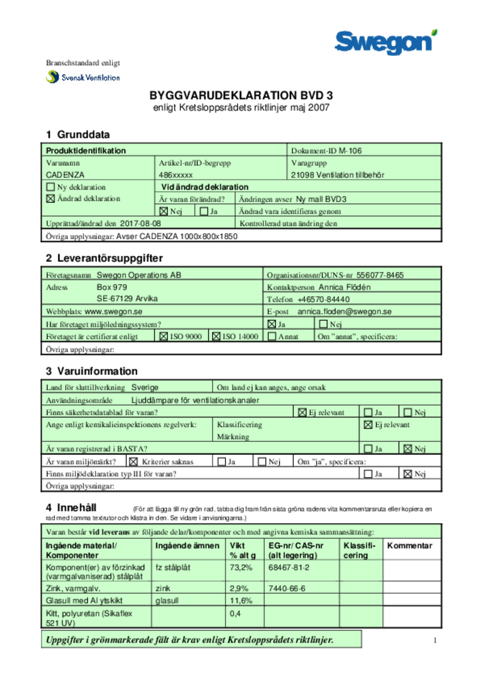 CADENZA är utvecklad mot dagens högt ställda krav på ljuddämpning och särskilt lämpad att användas ute i kanalsystemet.