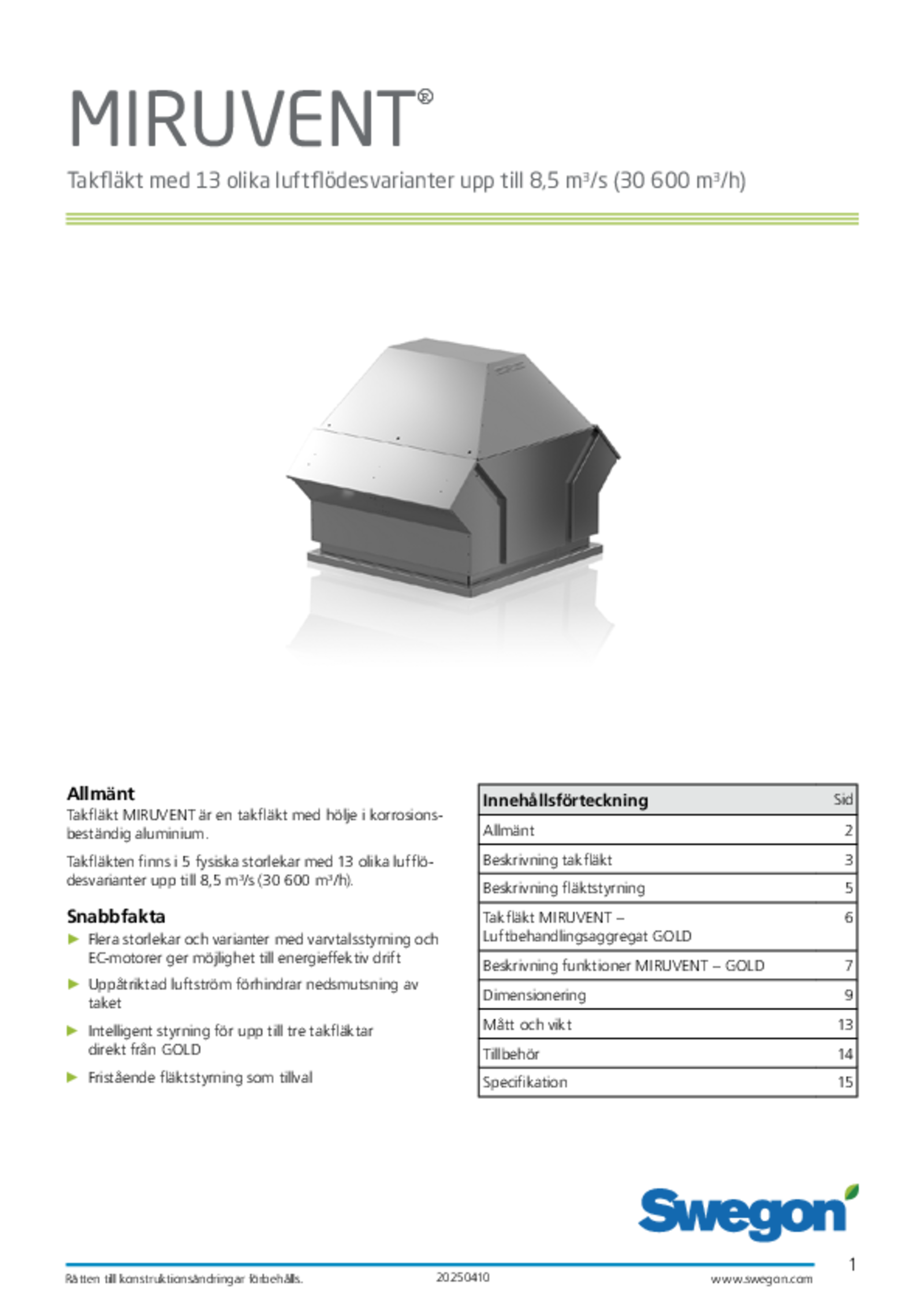 - Takfläktarna lämpar sig för både nybyggnad och i renoveringsobjekt.
