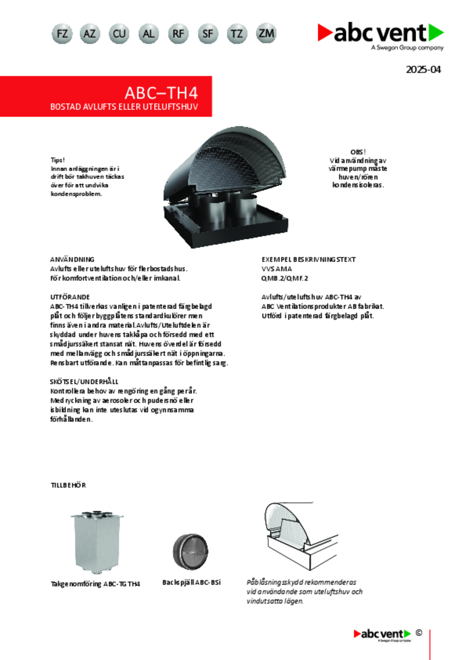| Kvadratisk avlufts- eller uteluftshuv med 4 anslutningar för bostadsventilation (pdf 1.51MB) | ABC-TH4 | Teknisk katalog | |