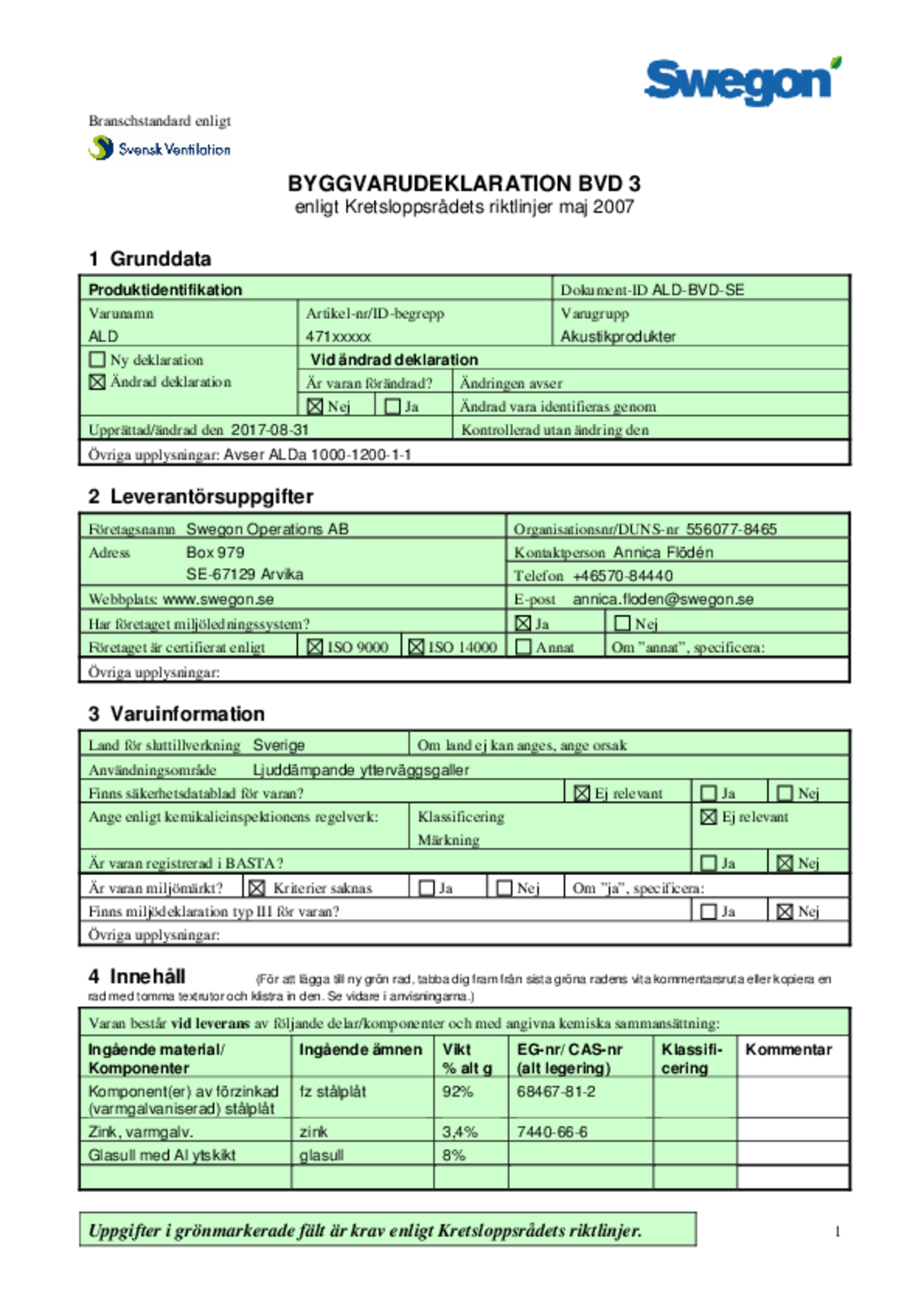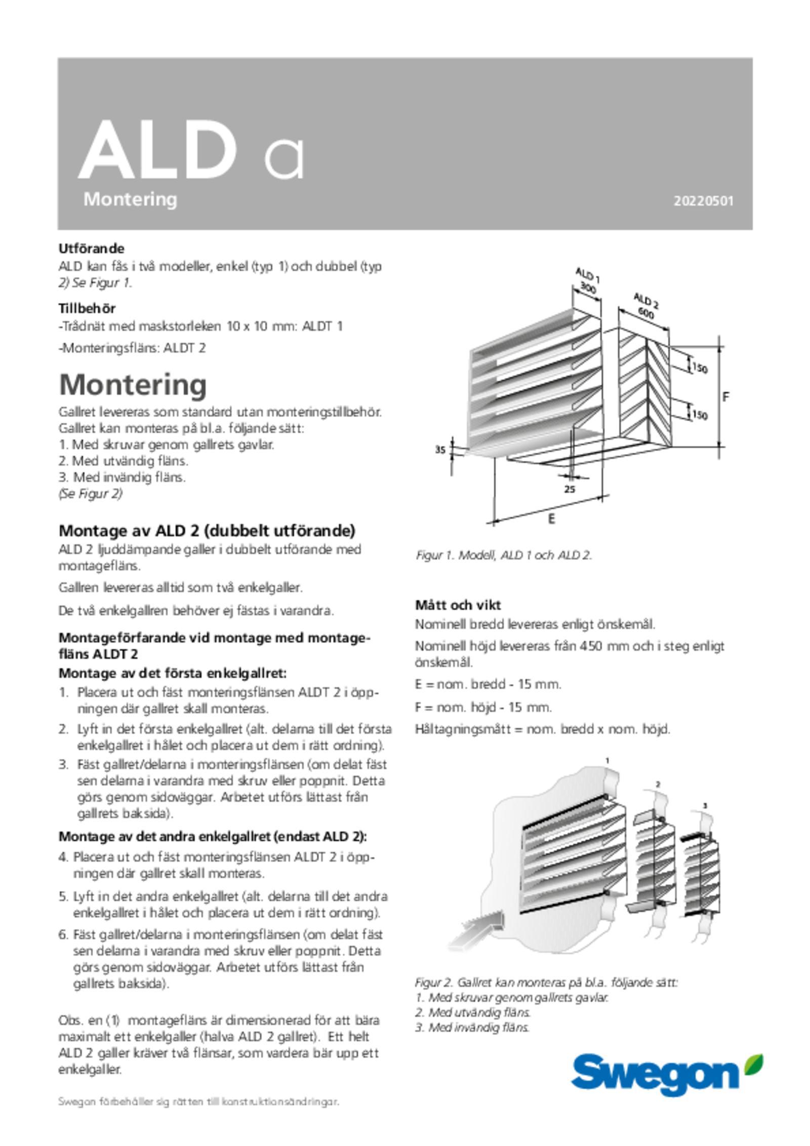 - Material: Levereras som standard i galvaniserad stålplåt till korrosivitetsklass C3 eller aluminium till korrosivitetsklass C4