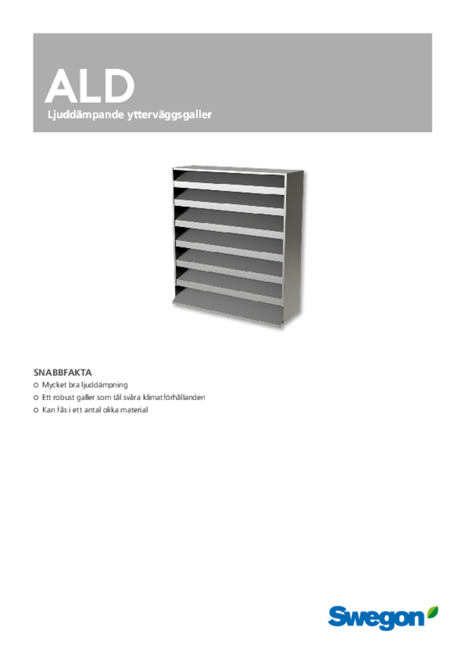 ALDa-gallret reducerar effektivt buller från fläkt- och maskinrum mm. till omgivningen. Bullret dämpas vid passagen mellan de ljudabsorberande lamellerna.