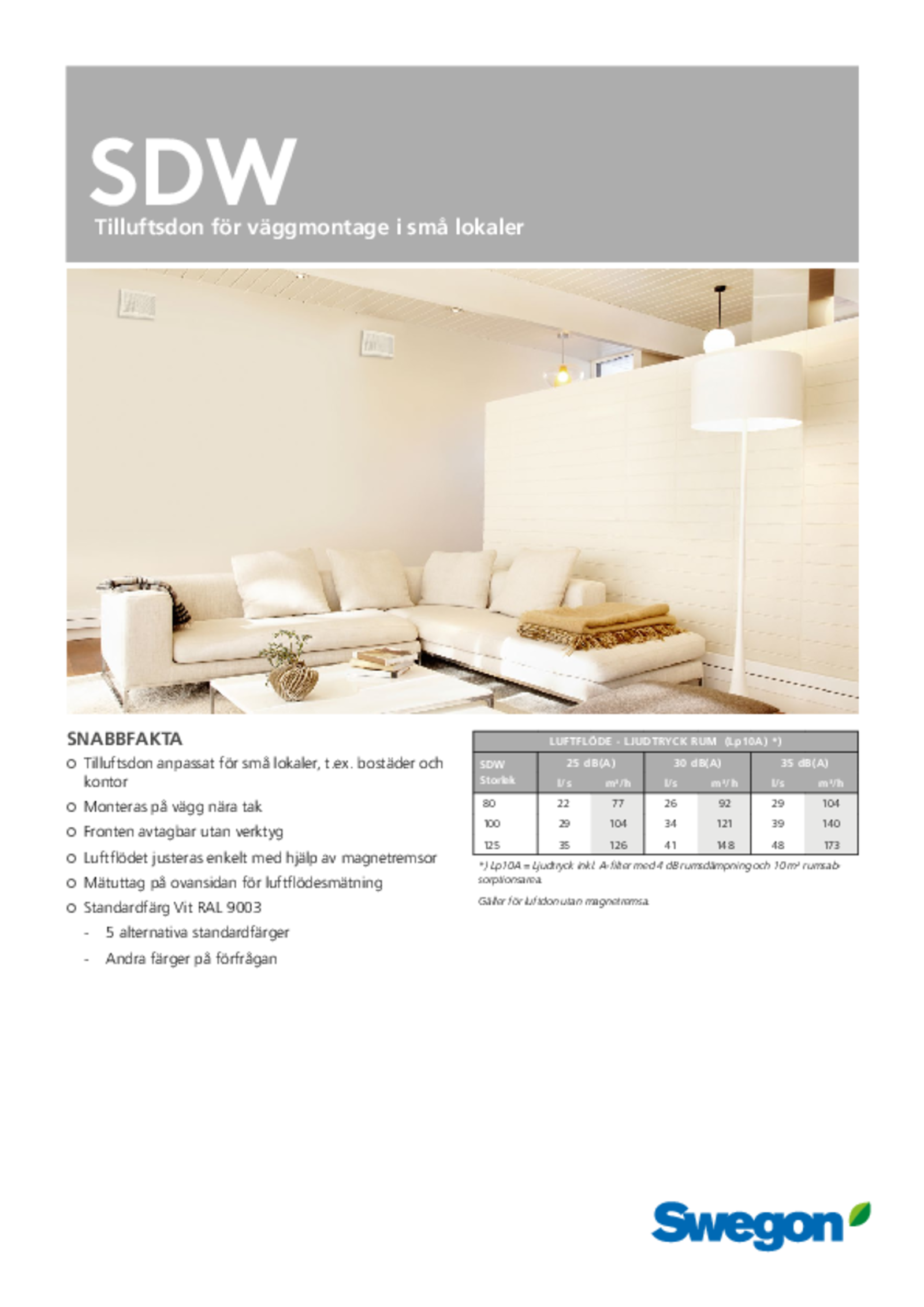 | Tilluftsdon för väggmontage i små lokaler (pdf 3.05MB) | SDWa | Teknisk katalog | |