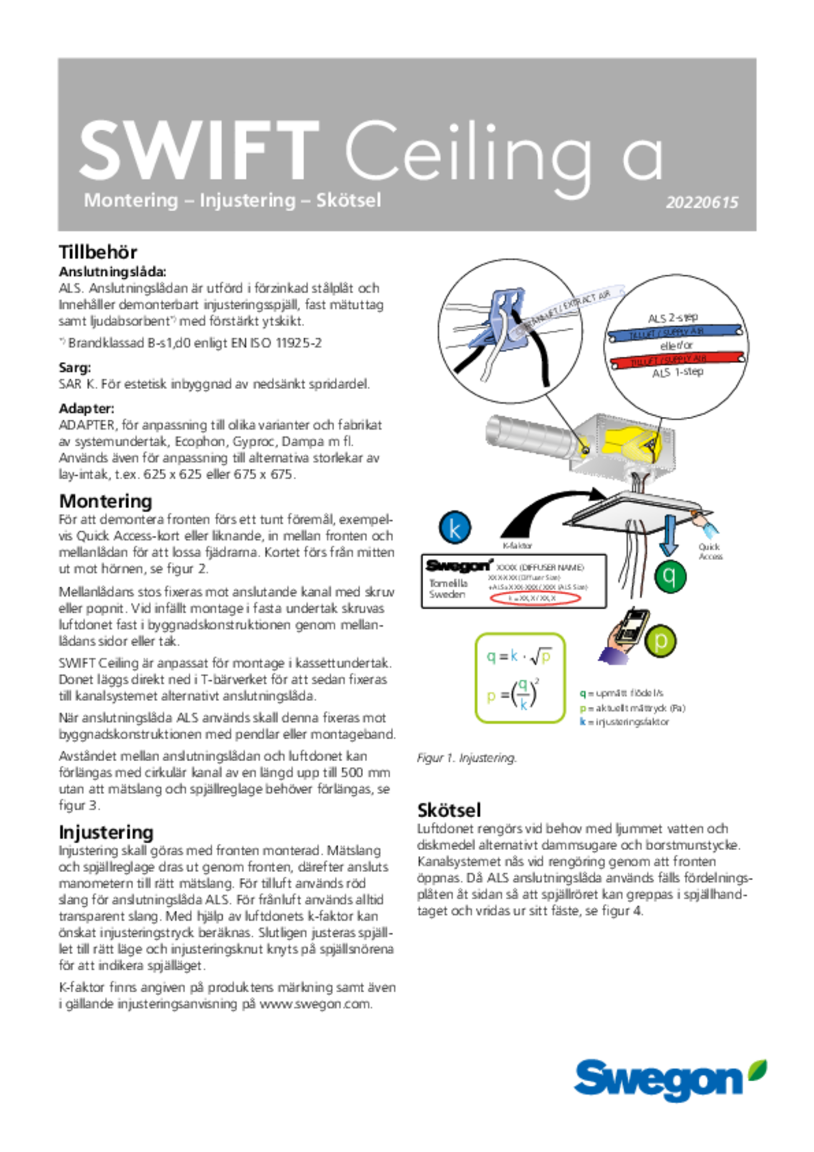 | Montering, injustering, skötsel (pdf 846.88kB) | SWIFT Ceiling a | IOM-manual | |