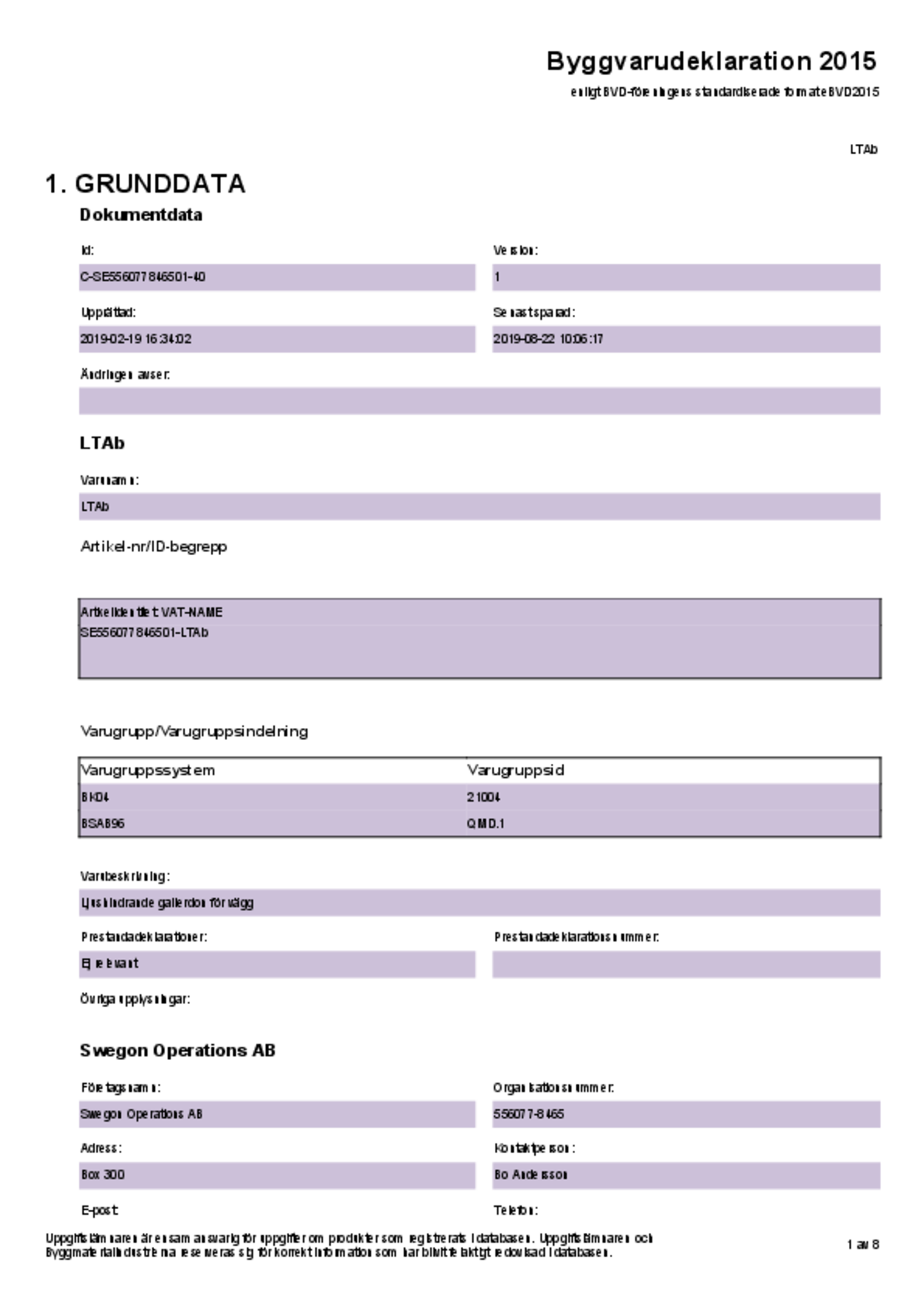 - LTA levereras i anodiserad aluminium som standard