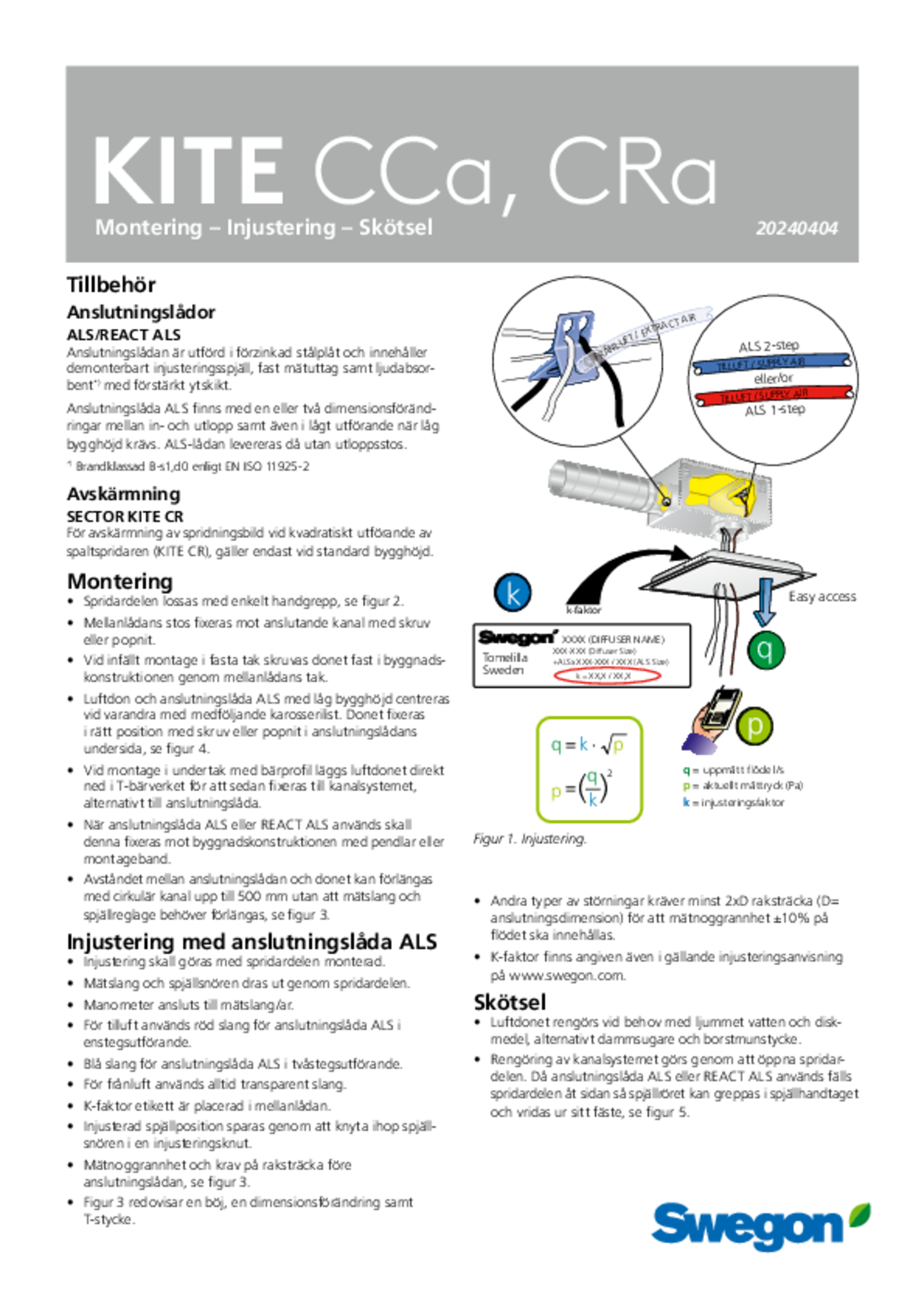 | Montering, injustering, skötsel (pdf 2.4MB) | KITE CCa, KITE CRa | IOM-manual | |