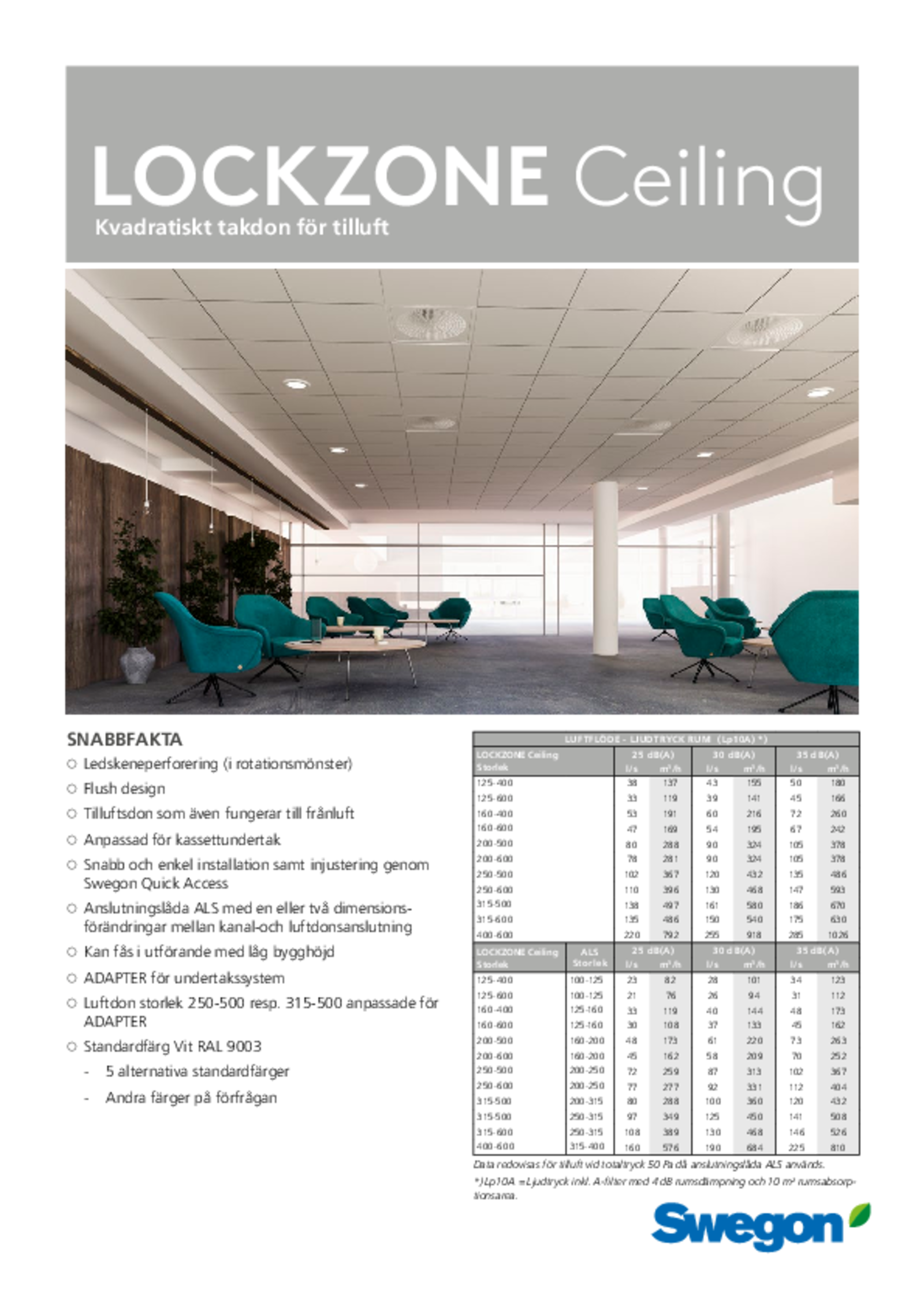 | Kvadratiskt takdon för tilluft (pdf 2.41MB) | LOCKZONE Ceiling a | Teknisk katalog | |